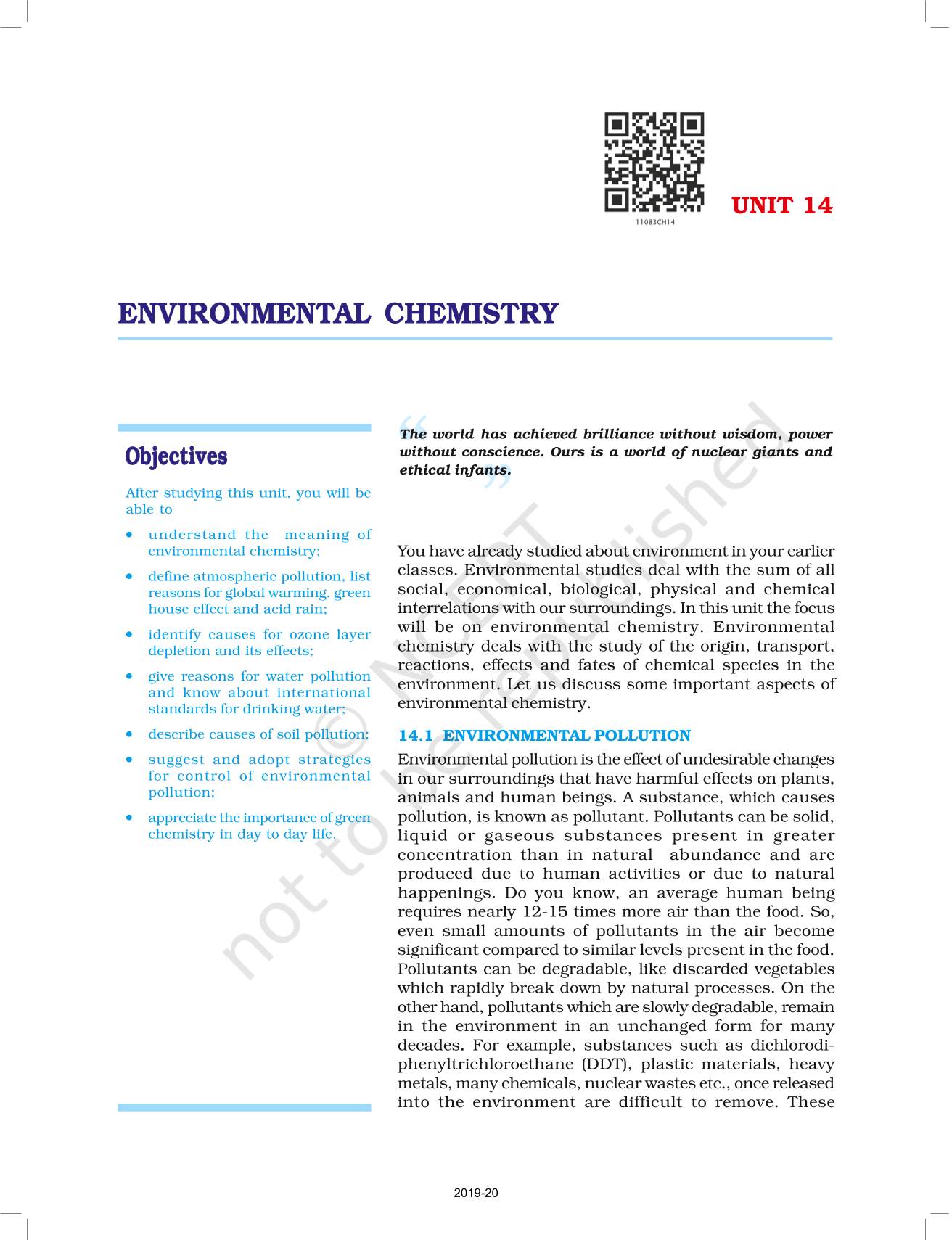 The time when students had limited options of choice for NCERT books wherein they need to go to the bookstore to buy the books but here at BeTrained.in, you can read the complete chapter-Environmental Chemistry of NCERT books for class 11 Chemistry Part II. If CBSE class 11 students are finding it hard to search for NCERT Chemistry Part II books online, then this is the right place as we have provided the textbooks of NCERT chapter wise. These books are available on our website for free along with NCERT Solutions and Exemplar solutions.