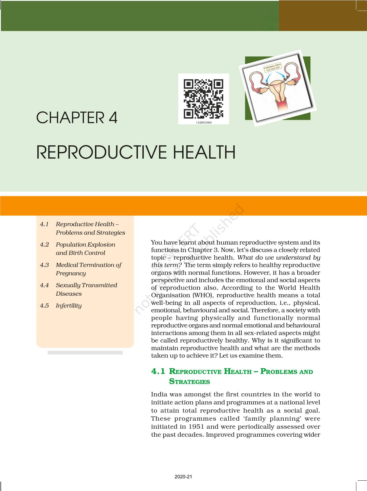 The time when students had limited options of choice for NCERT books wherein they need to go to the bookstore to buy the books but here at BeTrained.in, you can read the complete chapter-Reproductive Health of NCERT books for class 12 Biology. If CBSE class 12 students are finding it hard to search for NCERT Biology books online, then this is the right place as we have provided the textbooks of NCERT chapter wise. These books are available on our website for free along with NCERT Solutions and Exemplar solutions.