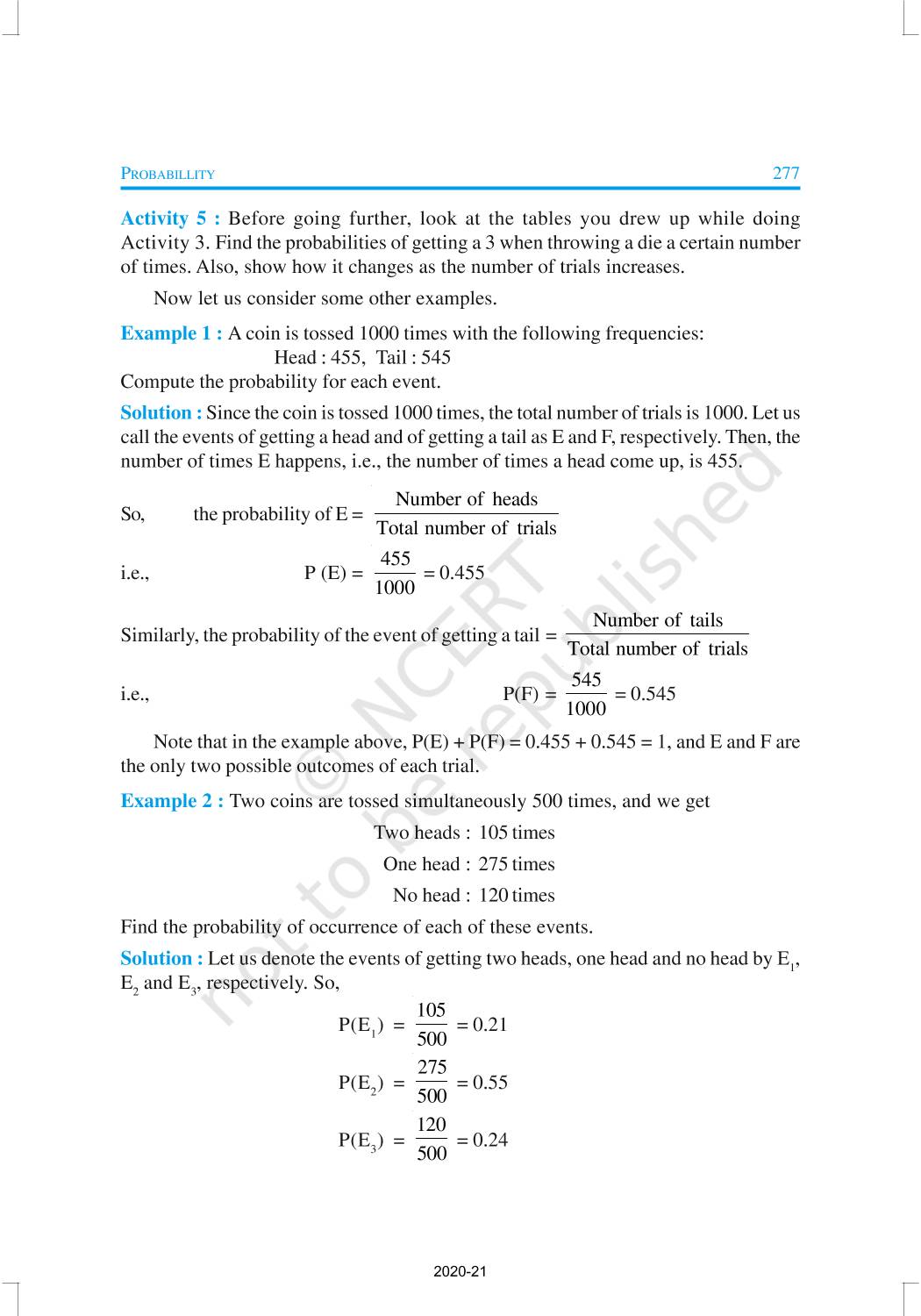 In earlier classes, you have had a glimpse of probability when you performed experiments like tossing of coins, throwing of dice, etc., and observed their outcomes. You will now learn to measure the chance of occurrence of a particular outcome in an experiment.
