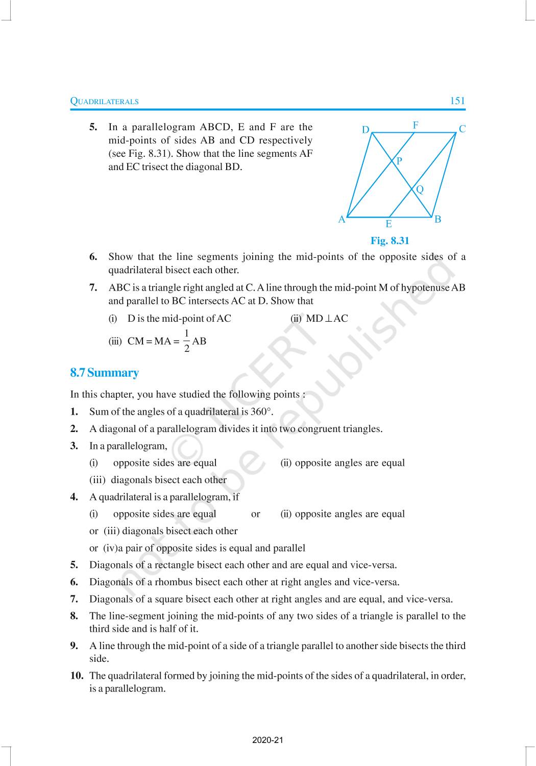 A quadrilateral has four sides, four angles and four vertices. In this chapter, we will study more about different types of quadrilaterals, their properties and especially those of parallelograms.