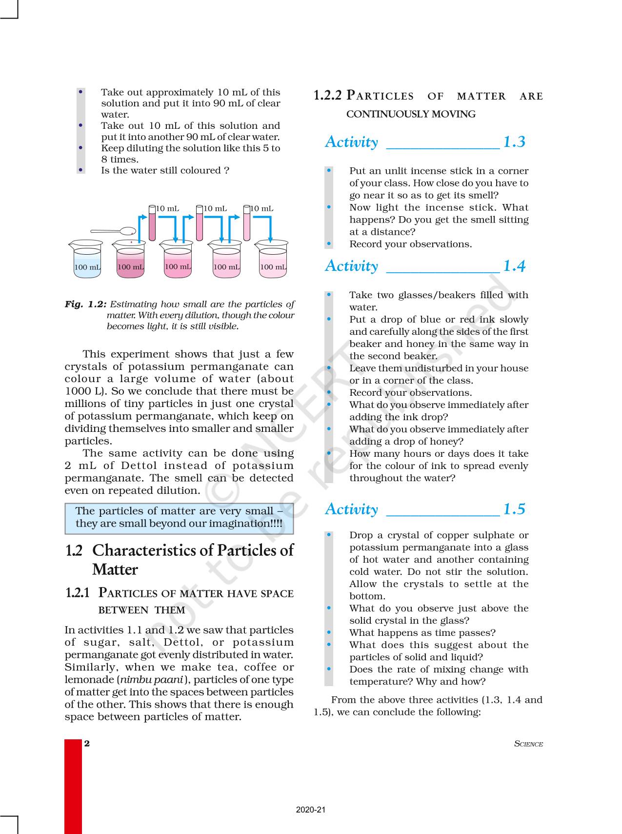 • The spaces in between the constituent particles and kinetic energy of the particles are minimum in the case of solids, intermediate in liquids and maximum in gases.