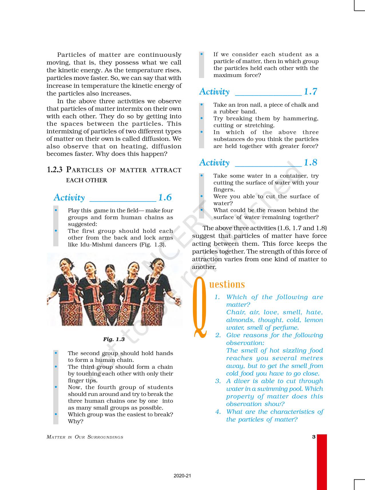 • The forces of attraction between the particles are maximum in solids, intermediate in liquids and minimum in gases.