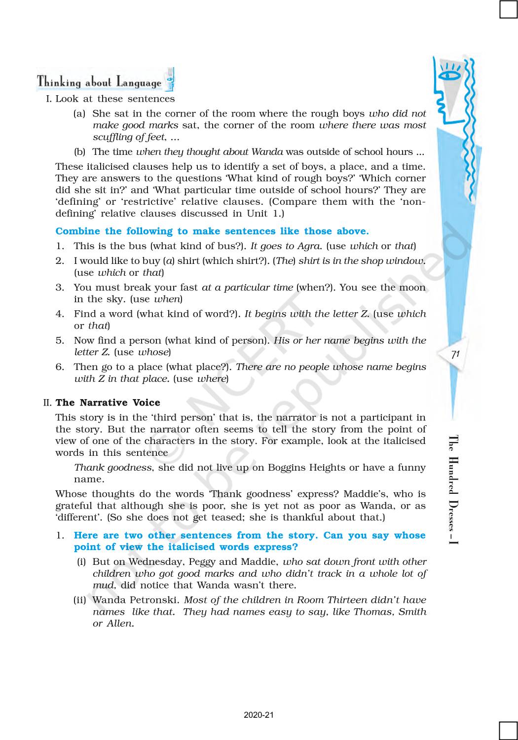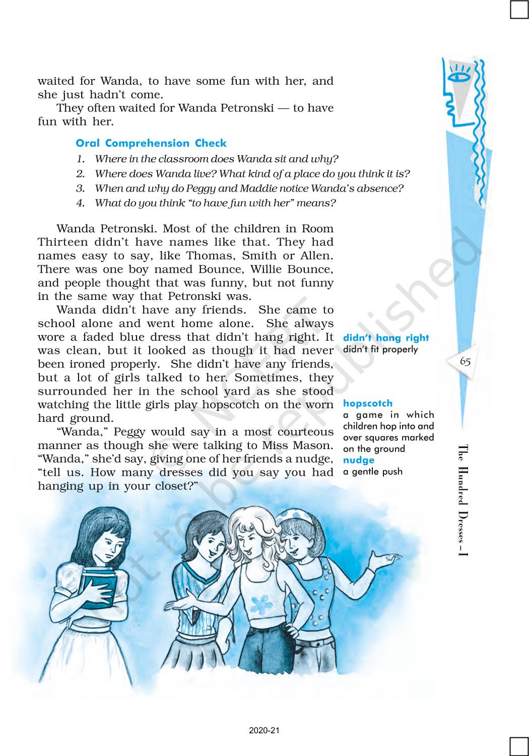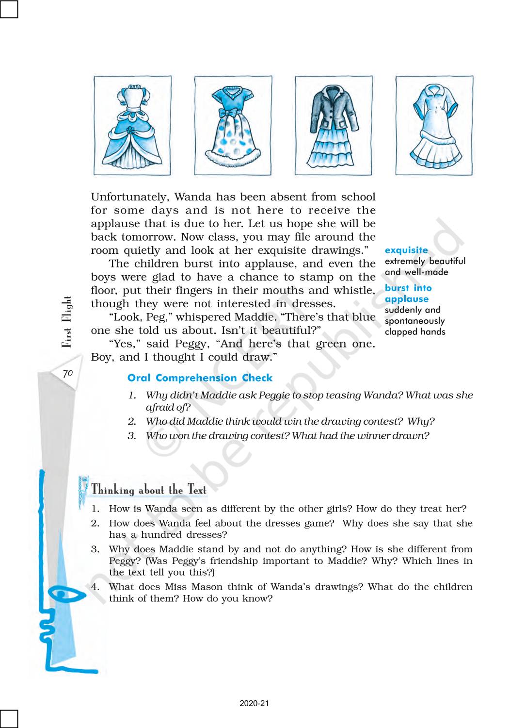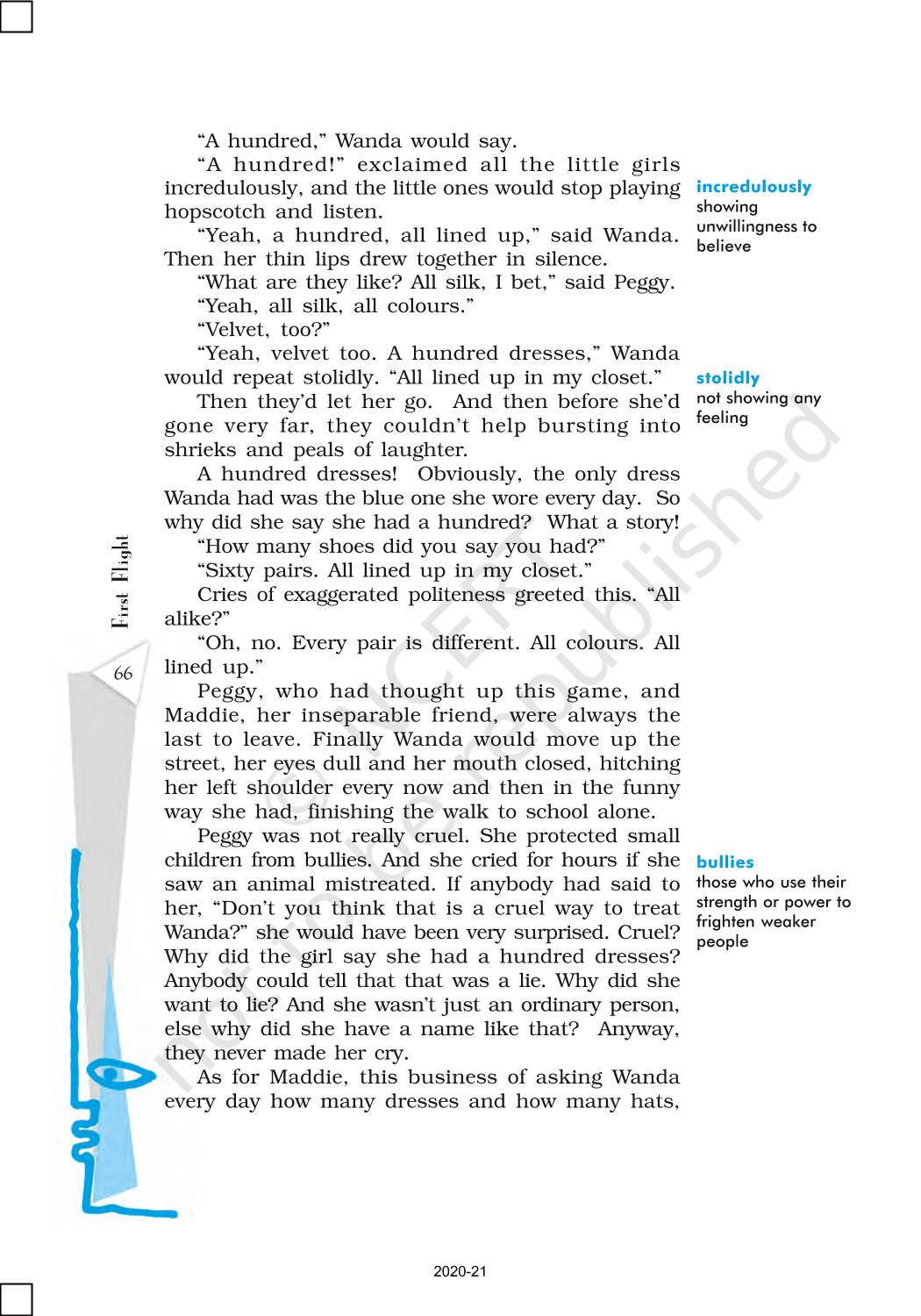 The time when students had limited options of choice for NCERT books wherein they need to go to the bookstore to buy the books but here at BeTrained.in, you can read the complete chapter-The Hundred Dresses I of NCERT books for class 10 First Flight. If CBSE class 10 students are finding it hard to search for NCERT First Flight books online, then this is the right place as we have provided the textbooks of NCERT chapter wise. These books are available on our website for free along with NCERT Solutions and Exemplar solutions.