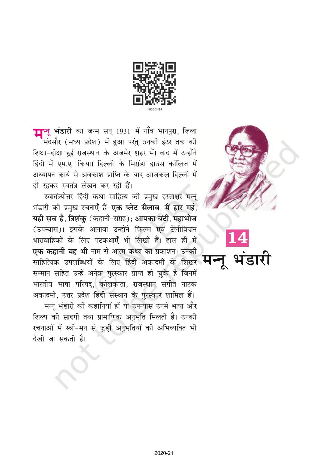 The time when students had limited options of choice for NCERT books wherein they need to go to the bookstore to buy the books but here at BeTrained.in, you can read the complete chapter-Mannu Bhandari of NCERT books for class 10 Hindi Kshitij Part 2. If CBSE class 10 students are finding it hard to search for NCERT Hindi Kshitij Part 2 books online, then this is the right place as we have provided the textbooks of NCERT chapter wise. These books are available on our website for free along with NCERT Solutions and Exemplar solutions.