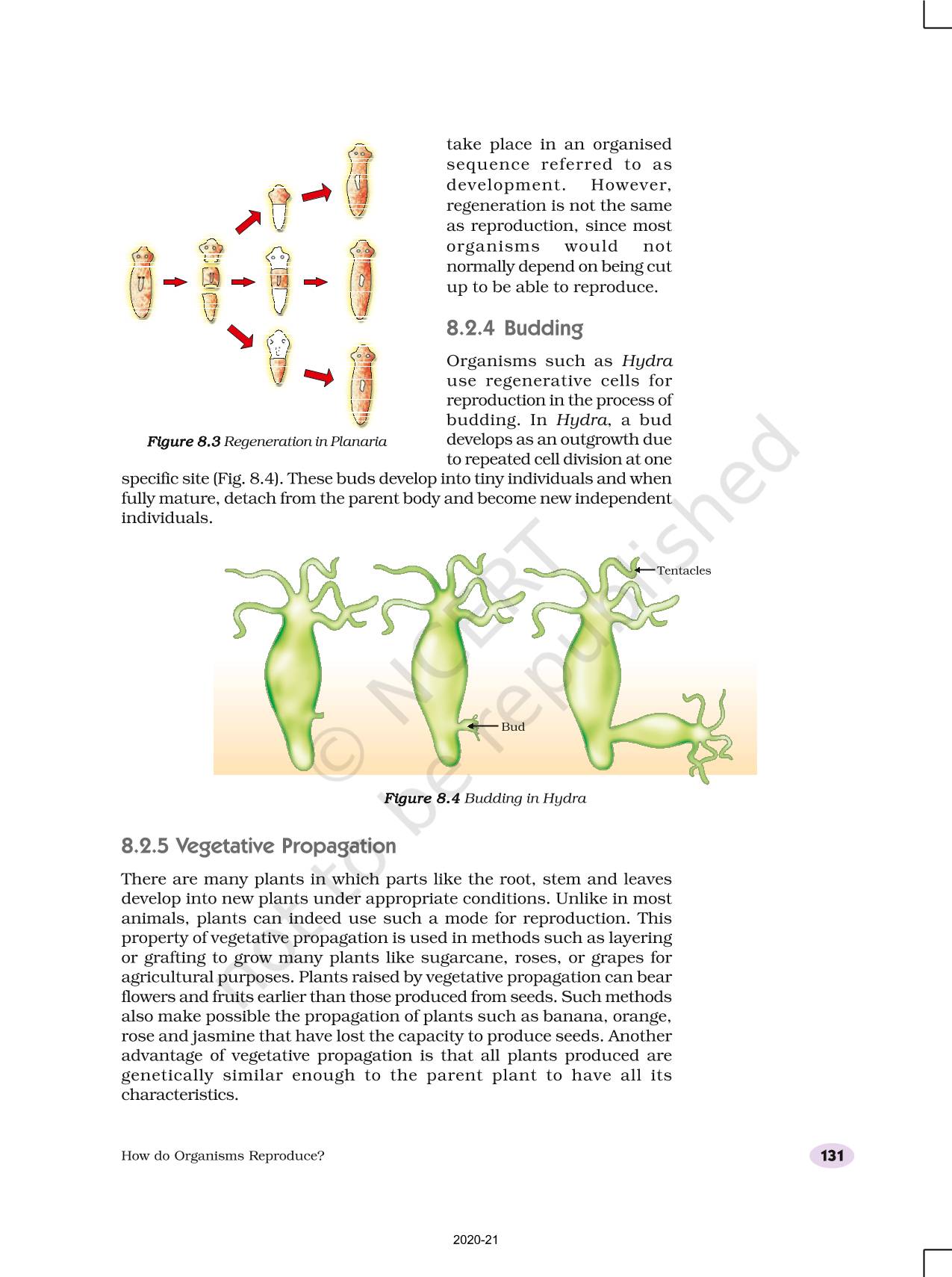 Organisms such as hydra can regenerate if they are broken into pieces. They can also give out buds which mature into new individuals.