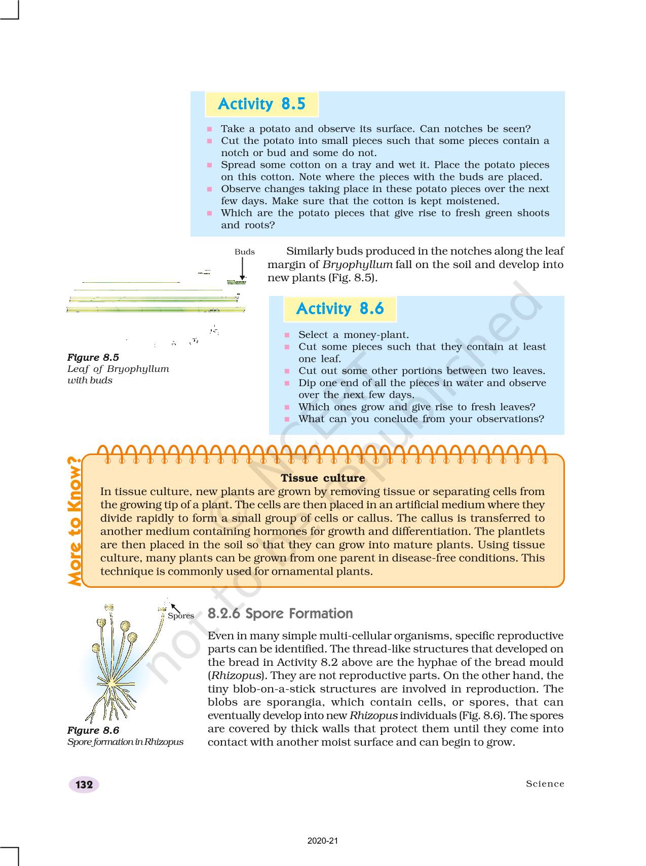 Roots, stems and leaves of some plants develop into new plants through vegetative propagation.