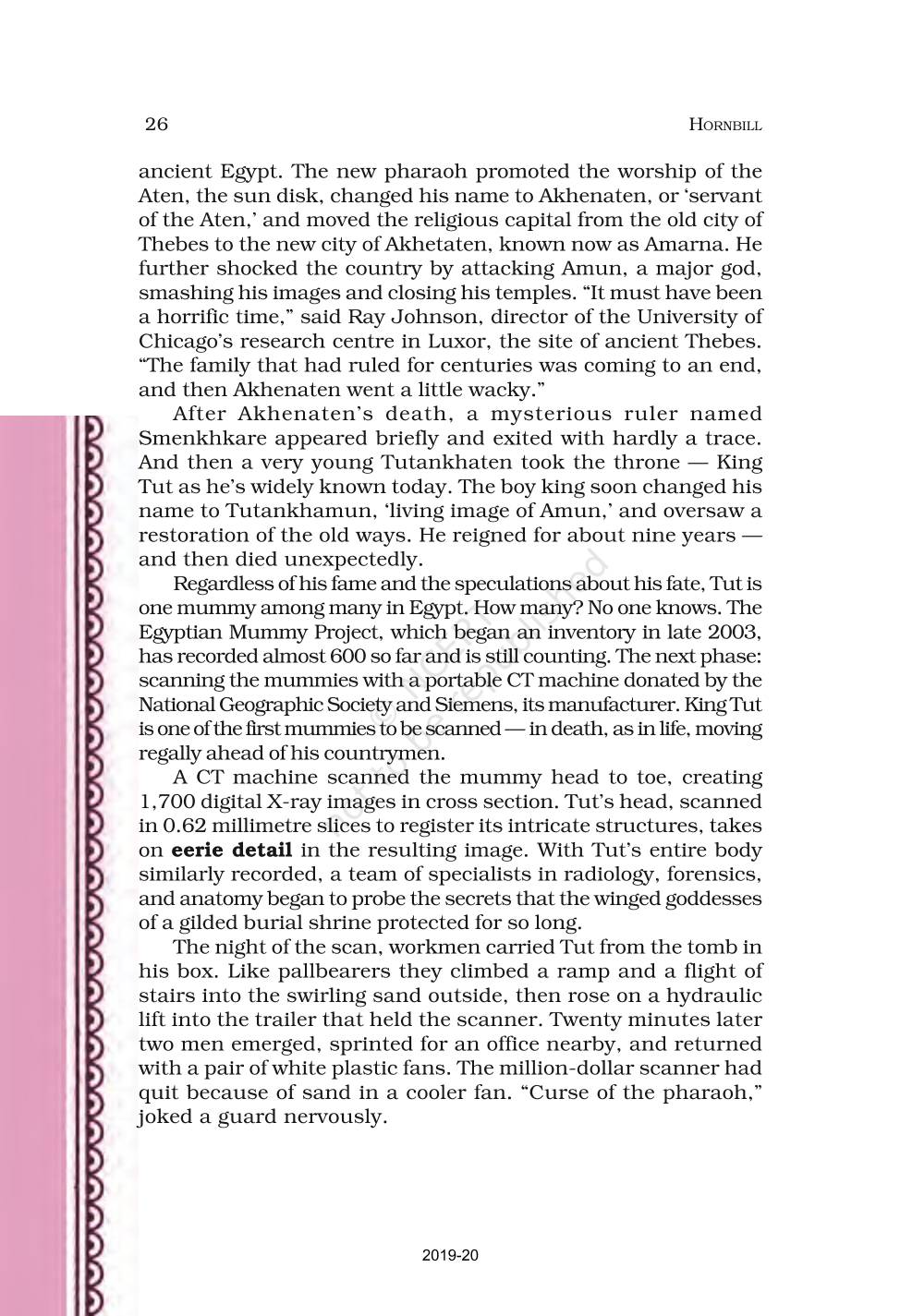 The time when students had limited options of choice for NCERT books wherein they need to go to the bookstore to buy the books but here at BeTrained.in, you can read the complete chapter-Discovering Tut The Saga Continues of NCERT books for class 11 English Hornbill. If CBSE class 11 students are finding it hard to search for NCERT English Hornbill books online, then this is the right place as we have provided the textbooks of NCERT chapter wise. These books are available on our website for free along with NCERT Solutions and Exemplar solutions.