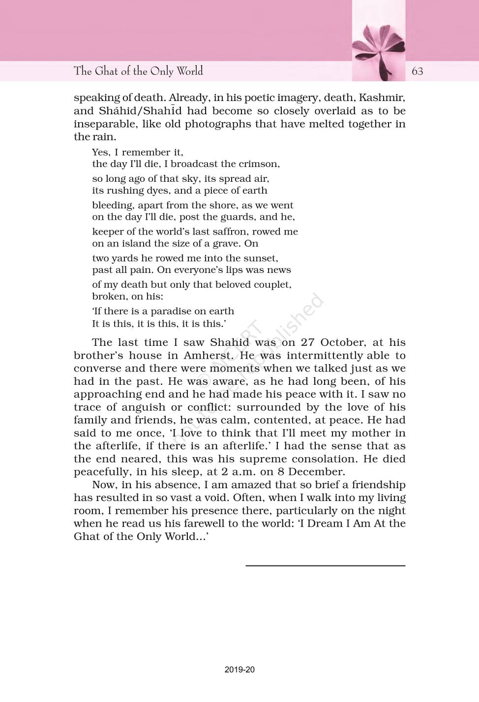 The time when students had limited options of choice for NCERT books wherein they need to go to the bookstore to buy the books but here at BeTrained.in, you can read the complete chapter-The Ghat Of The Only World of NCERT books for class 11 English Snapshot. If CBSE class 11 students are finding it hard to search for NCERT English Snapshot books online, then this is the right place as we have provided the textbooks of NCERT chapter wise. These books are available on our website for free along with NCERT Solutions and Exemplar solutions.