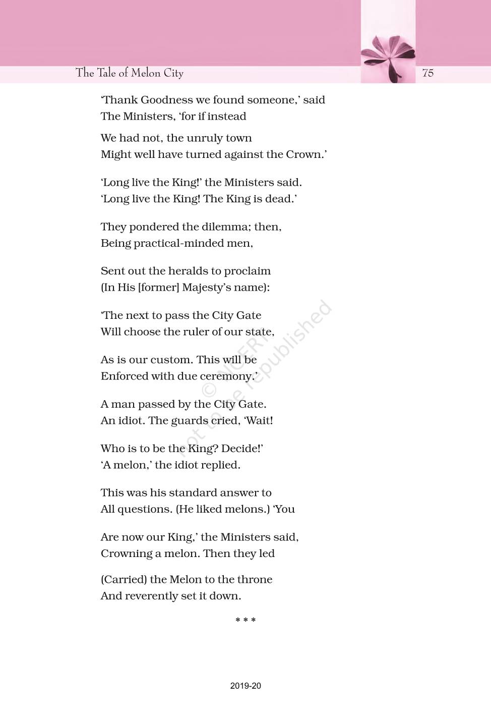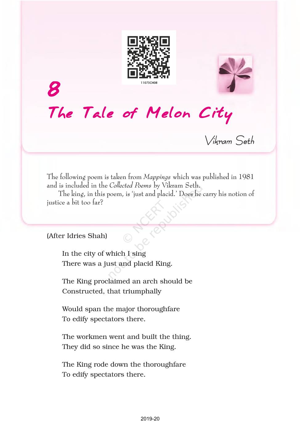 The time when students had limited options of choice for NCERT books wherein they need to go to the bookstore to buy the books but here at BeTrained.in, you can read the complete chapter-The Tale Of Melon City of NCERT books for class 11 English Snapshot. If CBSE class 11 students are finding it hard to search for NCERT English Snapshot books online, then this is the right place as we have provided the textbooks of NCERT chapter wise. These books are available on our website for free along with NCERT Solutions and Exemplar solutions.
