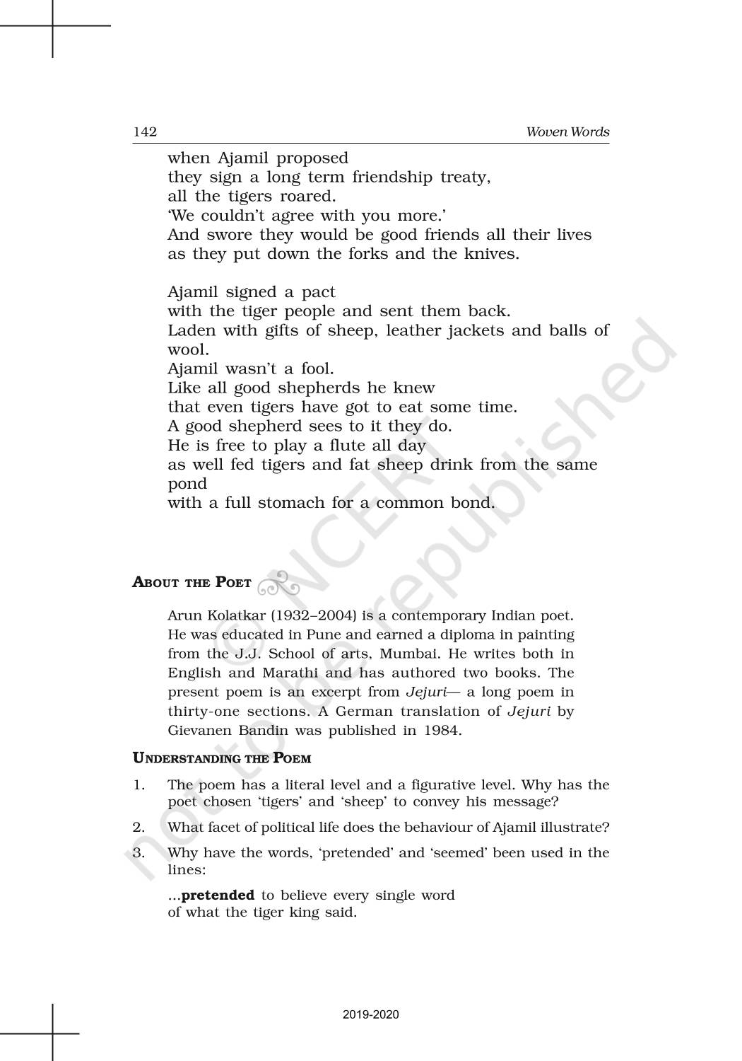 The time when students had limited options of choice for NCERT books wherein they need to go to the bookstore to buy the books but here at BeTrained.in, you can read the complete chapter-Poetry 12 Ajamil And The Tigers of NCERT books for class 11 English Woven Words. If CBSE class 11 students are finding it hard to search for NCERT English Woven Words books online, then this is the right place as we have provided the textbooks of NCERT chapter wise. These books are available on our website for free along with NCERT Solutions and Exemplar solutions.