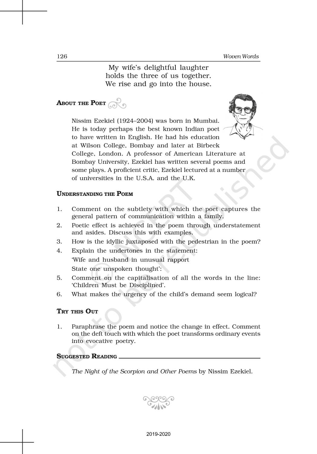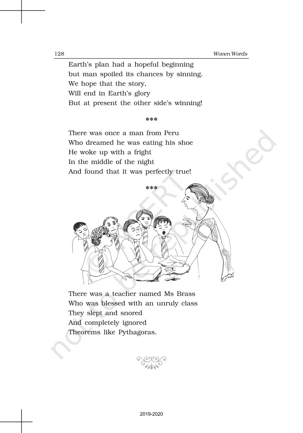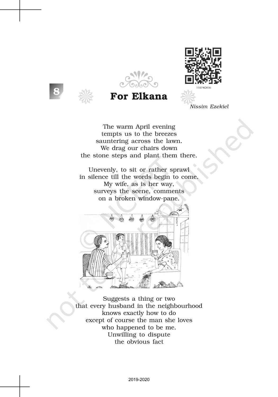 The time when students had limited options of choice for NCERT books wherein they need to go to the bookstore to buy the books but here at BeTrained.in, you can read the complete chapter-Poetry 8 For Elkana of NCERT books for class 11 English Woven Words. If CBSE class 11 students are finding it hard to search for NCERT English Woven Words books online, then this is the right place as we have provided the textbooks of NCERT chapter wise. These books are available on our website for free along with NCERT Solutions and Exemplar solutions.