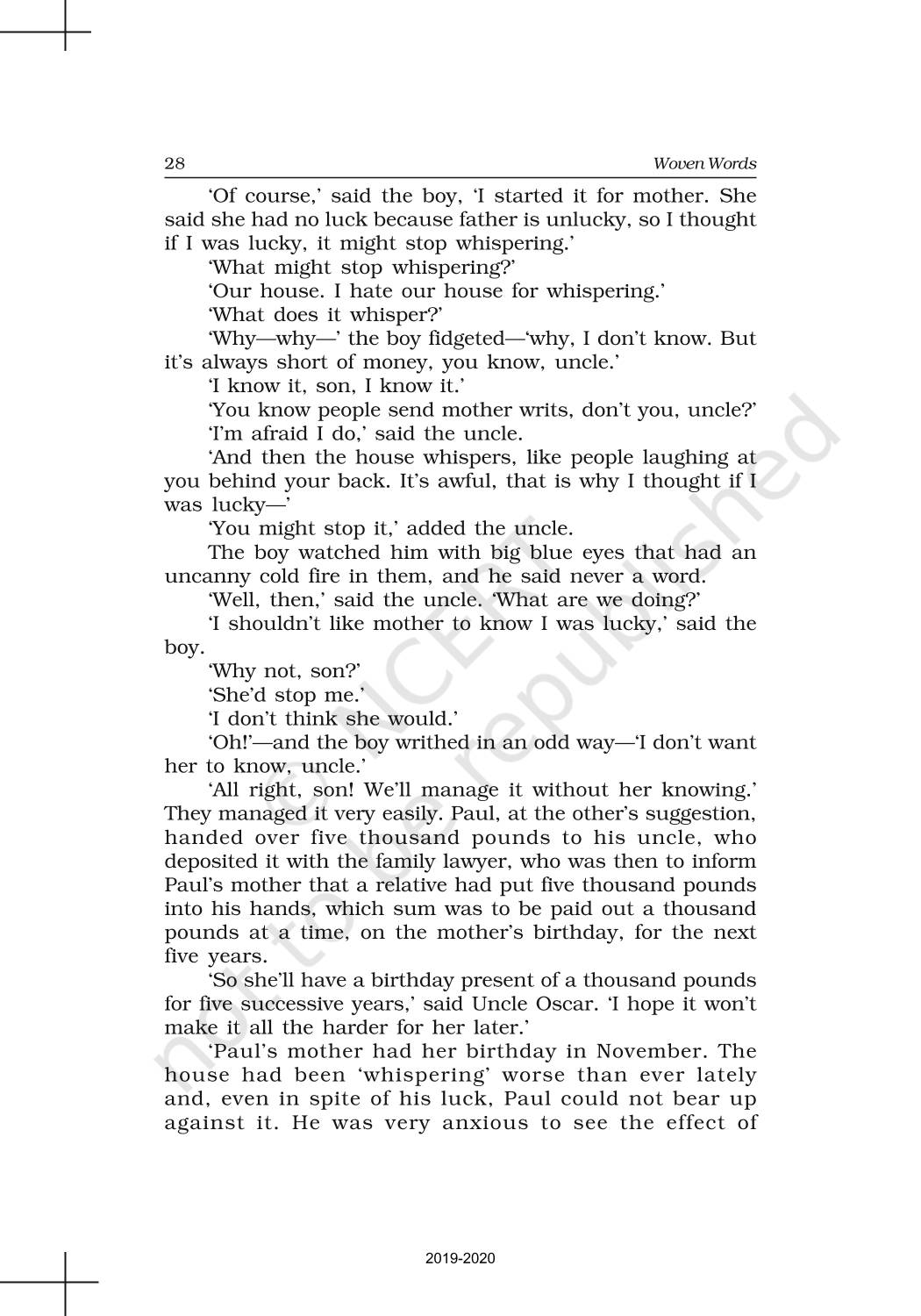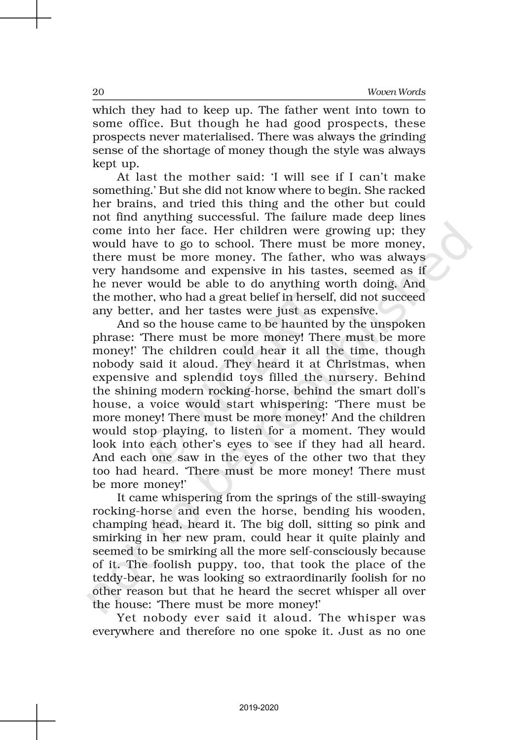 The time when students had limited options of choice for NCERT books wherein they need to go to the bookstore to buy the books but here at BeTrained.in, you can read the complete chapter-Short Stories 3 The Rocking Horse Winner of NCERT books for class 11 English Woven Words. If CBSE class 11 students are finding it hard to search for NCERT English Woven Words books online, then this is the right place as we have provided the textbooks of NCERT chapter wise. These books are available on our website for free along with NCERT Solutions and Exemplar solutions.