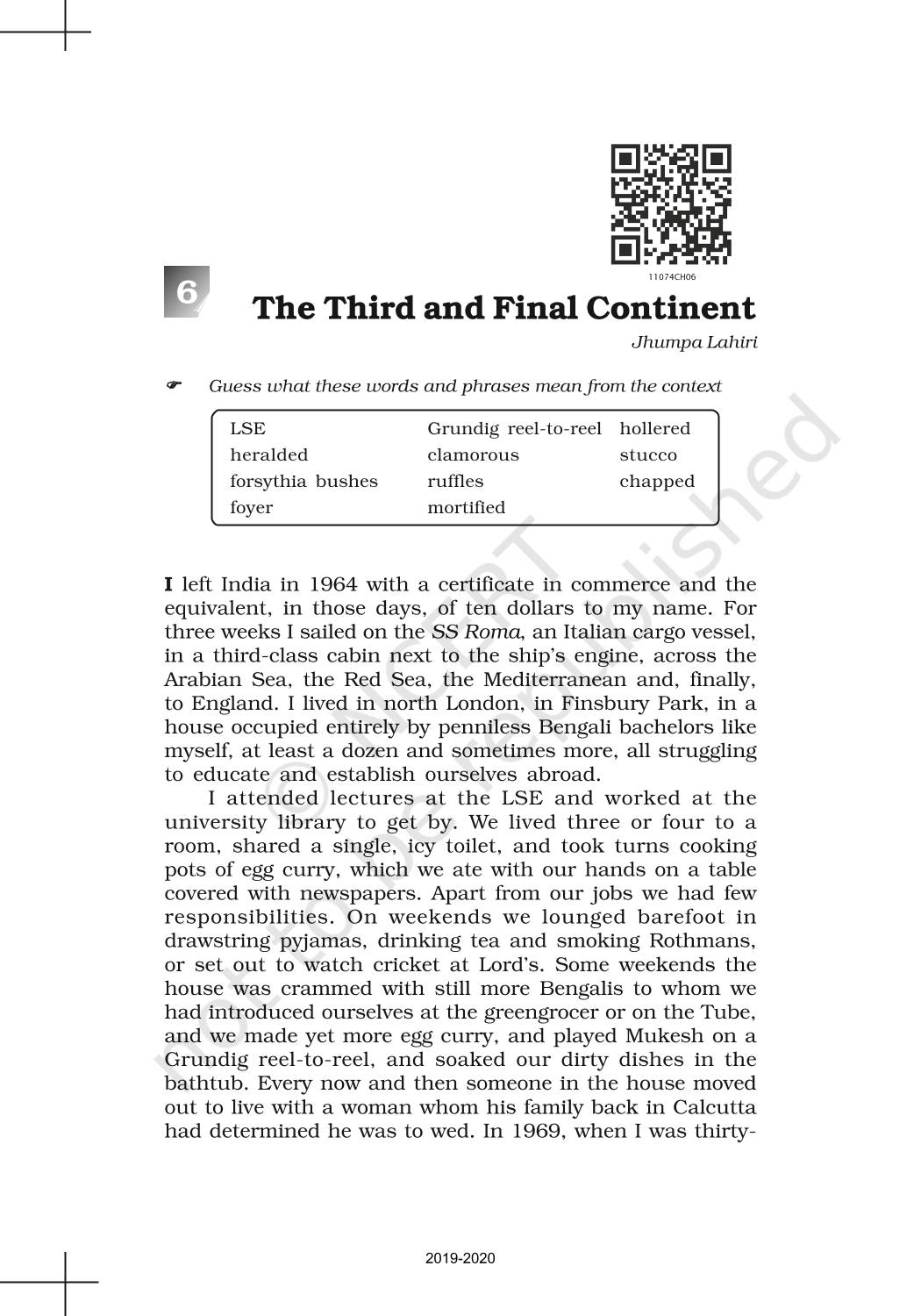 The time when students had limited options of choice for NCERT books wherein they need to go to the bookstore to buy the books but here at BeTrained.in, you can read the complete chapter-Short Stories 6 The Third And Final Continent of NCERT books for class 11 English Woven Words. If CBSE class 11 students are finding it hard to search for NCERT English Woven Words books online, then this is the right place as we have provided the textbooks of NCERT chapter wise. These books are available on our website for free along with NCERT Solutions and Exemplar solutions.