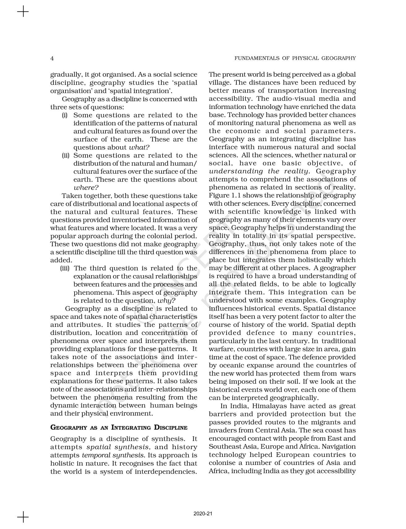 The time when students had limited options of choice for NCERT books wherein they need to go to the bookstore to buy the books but here at BeTrained.in, you can read the complete chapter-Geography As A Discipline of NCERT books for class 11 Fundamental Of Physical Geography. If CBSE class 11 students are finding it hard to search for NCERT Fundamental Of Physical Geography books online, then this is the right place as we have provided the textbooks of NCERT chapter wise. These books are available on our website for free along with NCERT Solutions and Exemplar solutions.