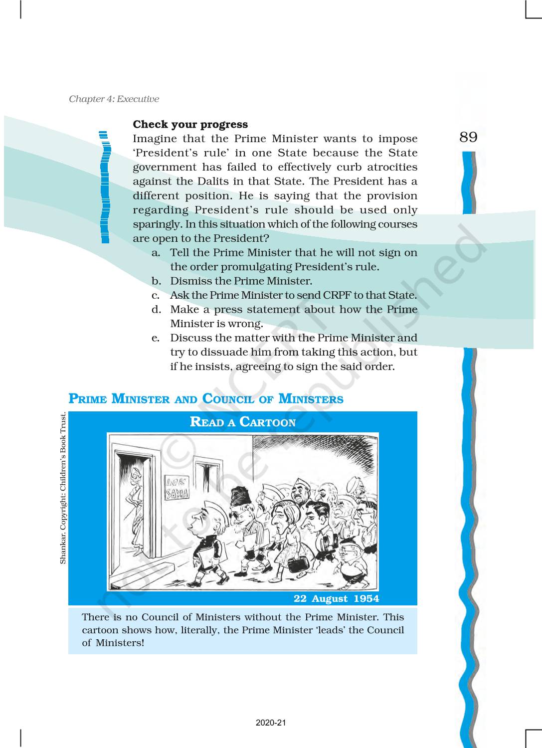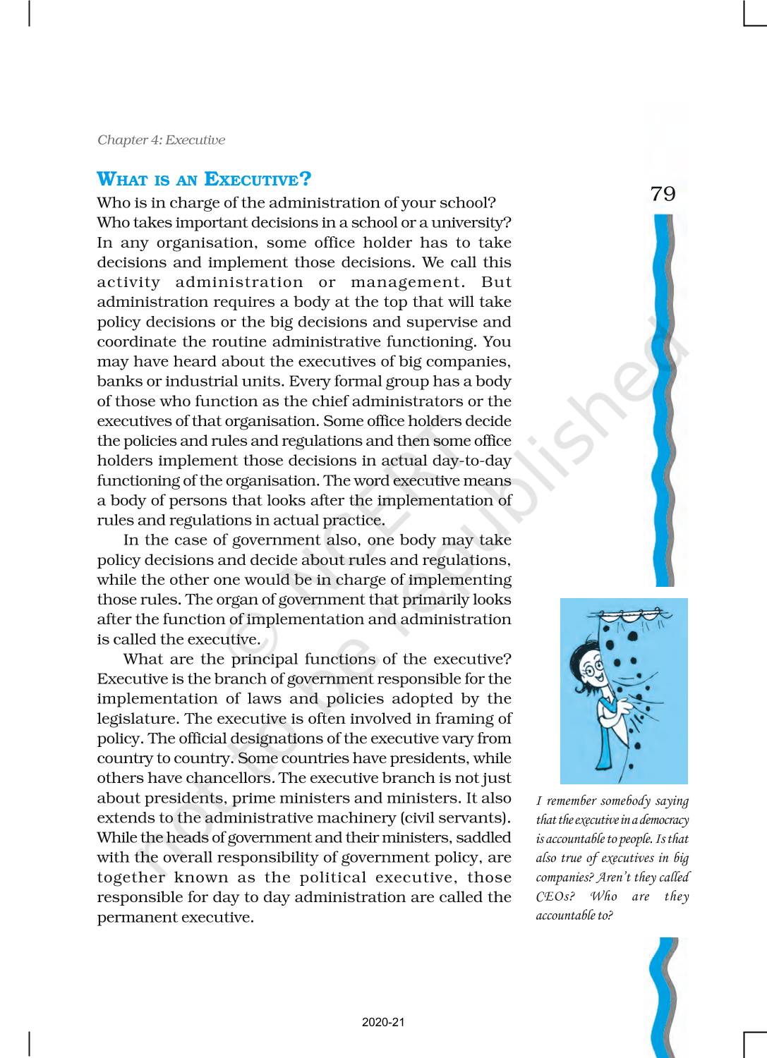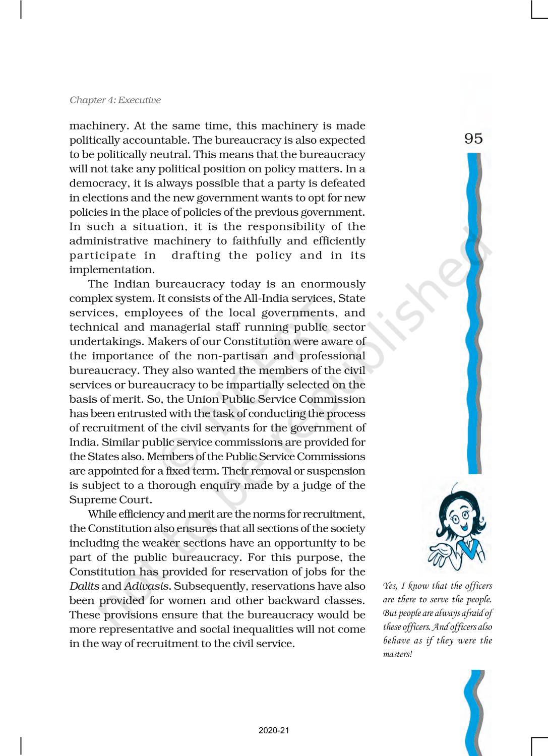 The time when students had limited options of choice for NCERT books wherein they need to go to the bookstore to buy the books but here at BeTrained.in, you can read the complete chapter-Executive of NCERT books for class 11 Indian Constitution At Work. If CBSE class 11 students are finding it hard to search for NCERT Indian Constitution At Work books online, then this is the right place as we have provided the textbooks of NCERT chapter wise. These books are available on our website for free along with NCERT Solutions and Exemplar solutions.