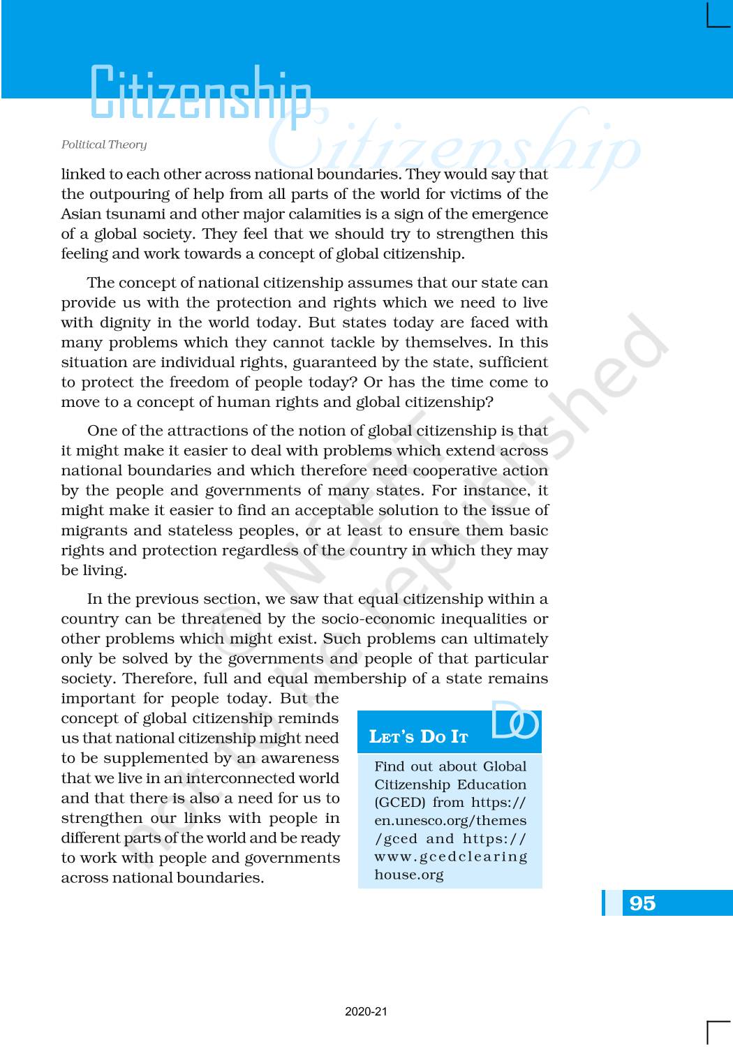 The time when students had limited options of choice for NCERT books wherein they need to go to the bookstore to buy the books but here at BeTrained.in, you can read the complete chapter-Citizenship of NCERT books for class 11 Political Theory. If CBSE class 11 students are finding it hard to search for NCERT Political Theory books online, then this is the right place as we have provided the textbooks of NCERT chapter wise. These books are available on our website for free along with NCERT Solutions and Exemplar solutions.