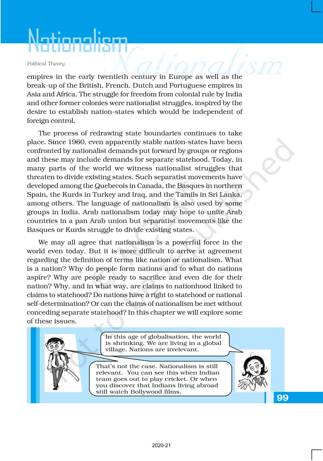 The time when students had limited options of choice for NCERT books wherein they need to go to the bookstore to buy the books but here at BeTrained.in, you can read the complete chapter-Nationalism of NCERT books for class 11 Political Theory. If CBSE class 11 students are finding it hard to search for NCERT Political Theory books online, then this is the right place as we have provided the textbooks of NCERT chapter wise. These books are available on our website for free along with NCERT Solutions and Exemplar solutions.