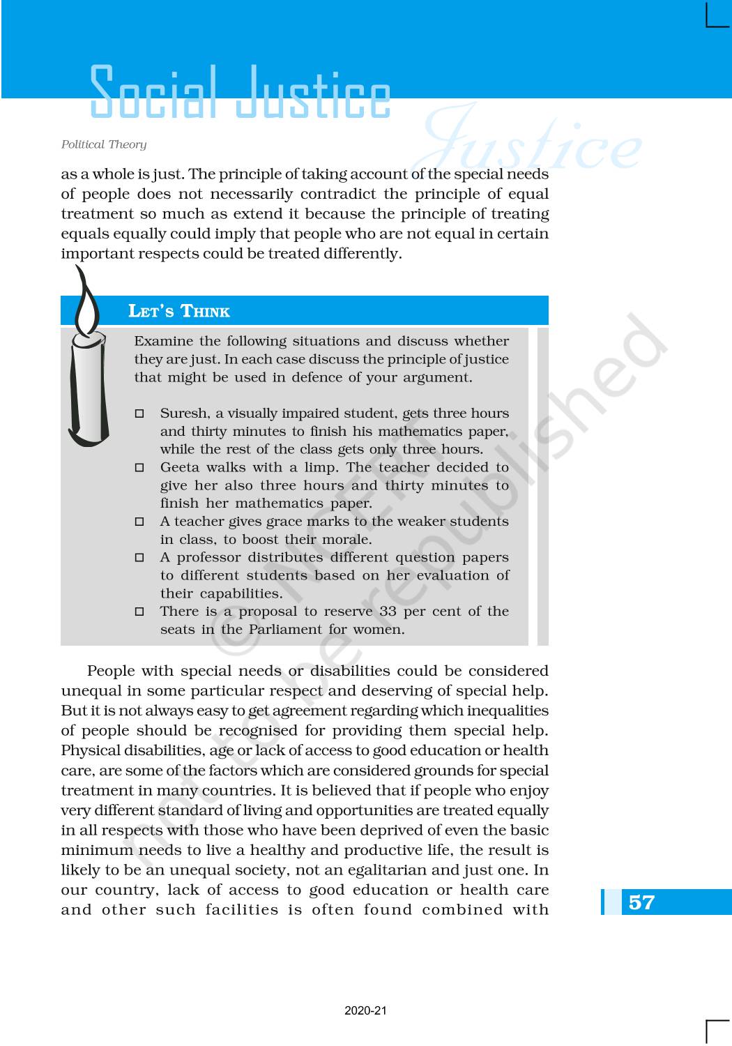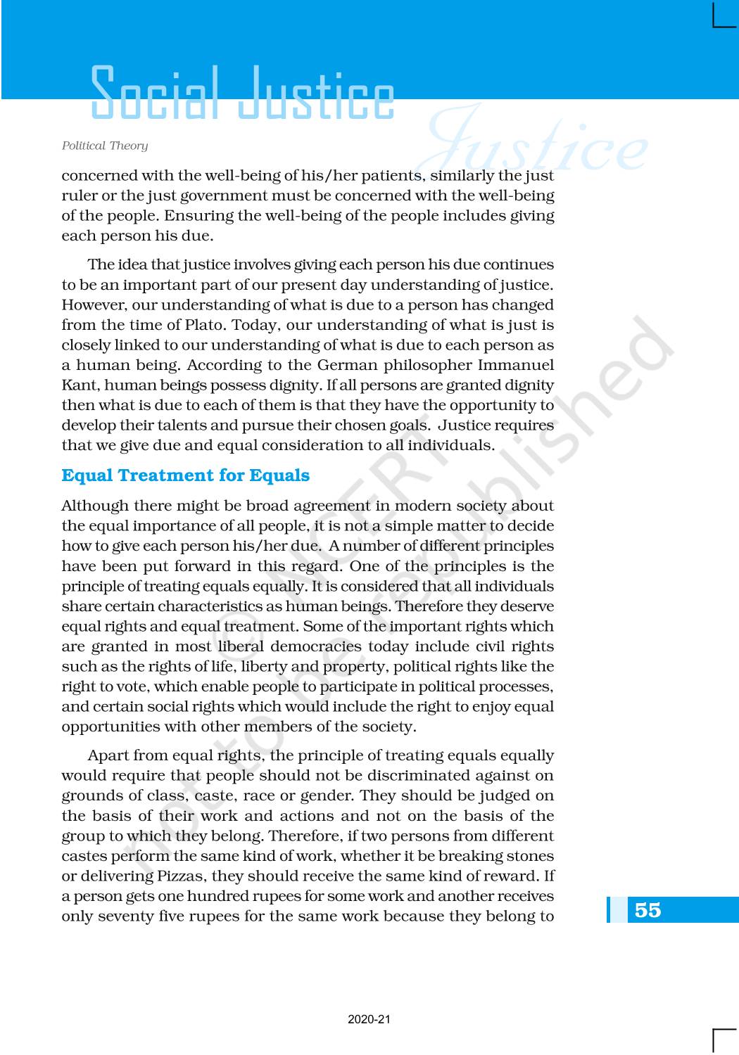The time when students had limited options of choice for NCERT books wherein they need to go to the bookstore to buy the books but here at BeTrained.in, you can read the complete chapter-Social Justice of NCERT books for class 11 Political Theory. If CBSE class 11 students are finding it hard to search for NCERT Political Theory books online, then this is the right place as we have provided the textbooks of NCERT chapter wise. These books are available on our website for free along with NCERT Solutions and Exemplar solutions.