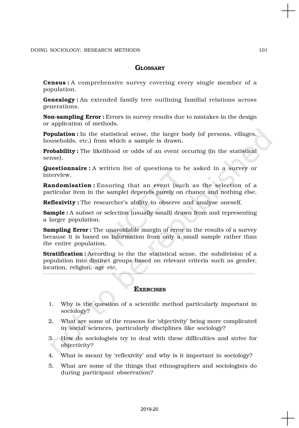The time when students had limited options of choice for NCERT books wherein they need to go to the bookstore to buy the books but here at BeTrained.in, you can read the complete chapter-Doing Sociology Research Methods of NCERT books for class 11 Sociology. If CBSE class 11 students are finding it hard to search for NCERT Sociology books online, then this is the right place as we have provided the textbooks of NCERT chapter wise. These books are available on our website for free along with NCERT Solutions and Exemplar solutions.