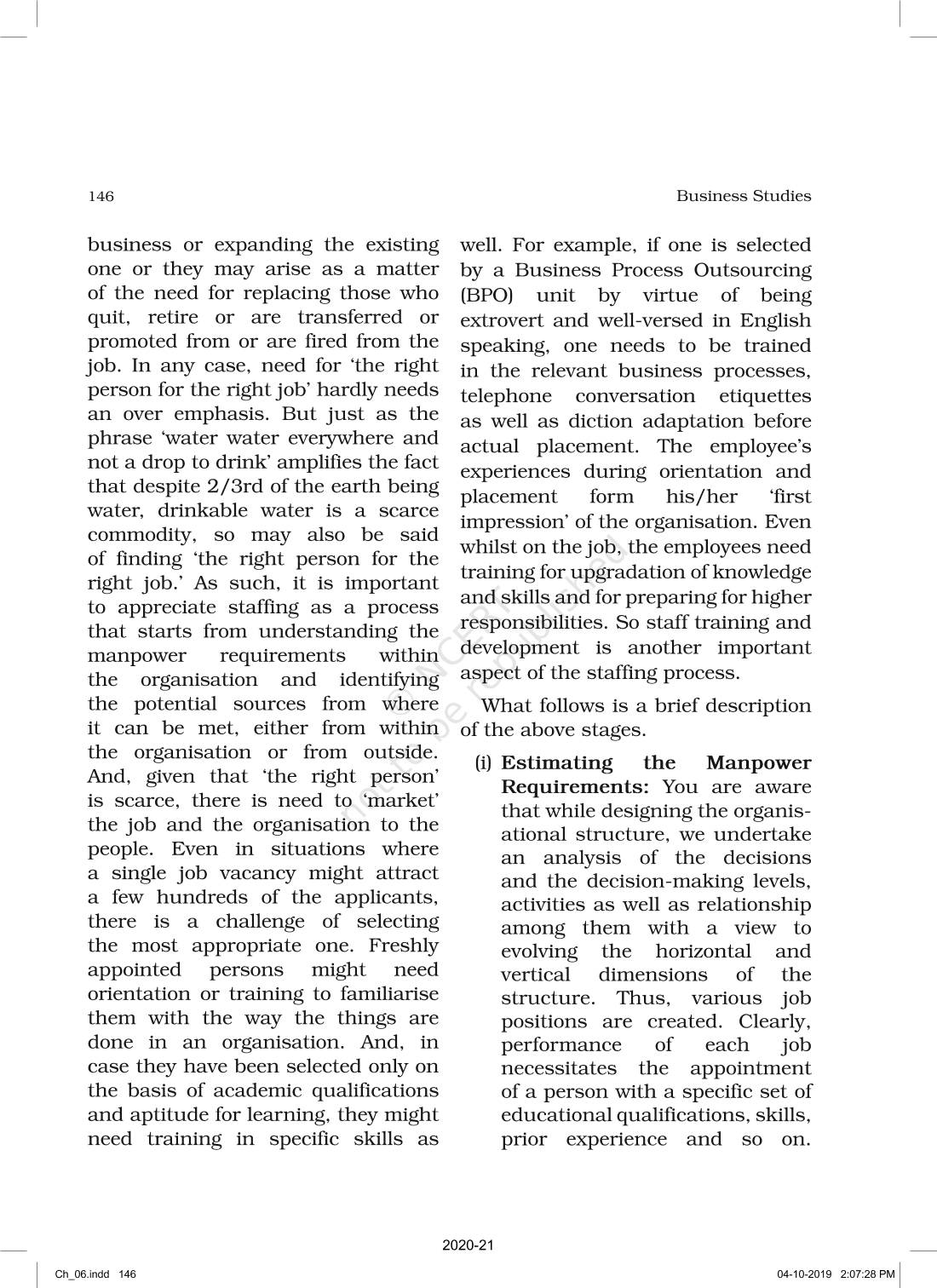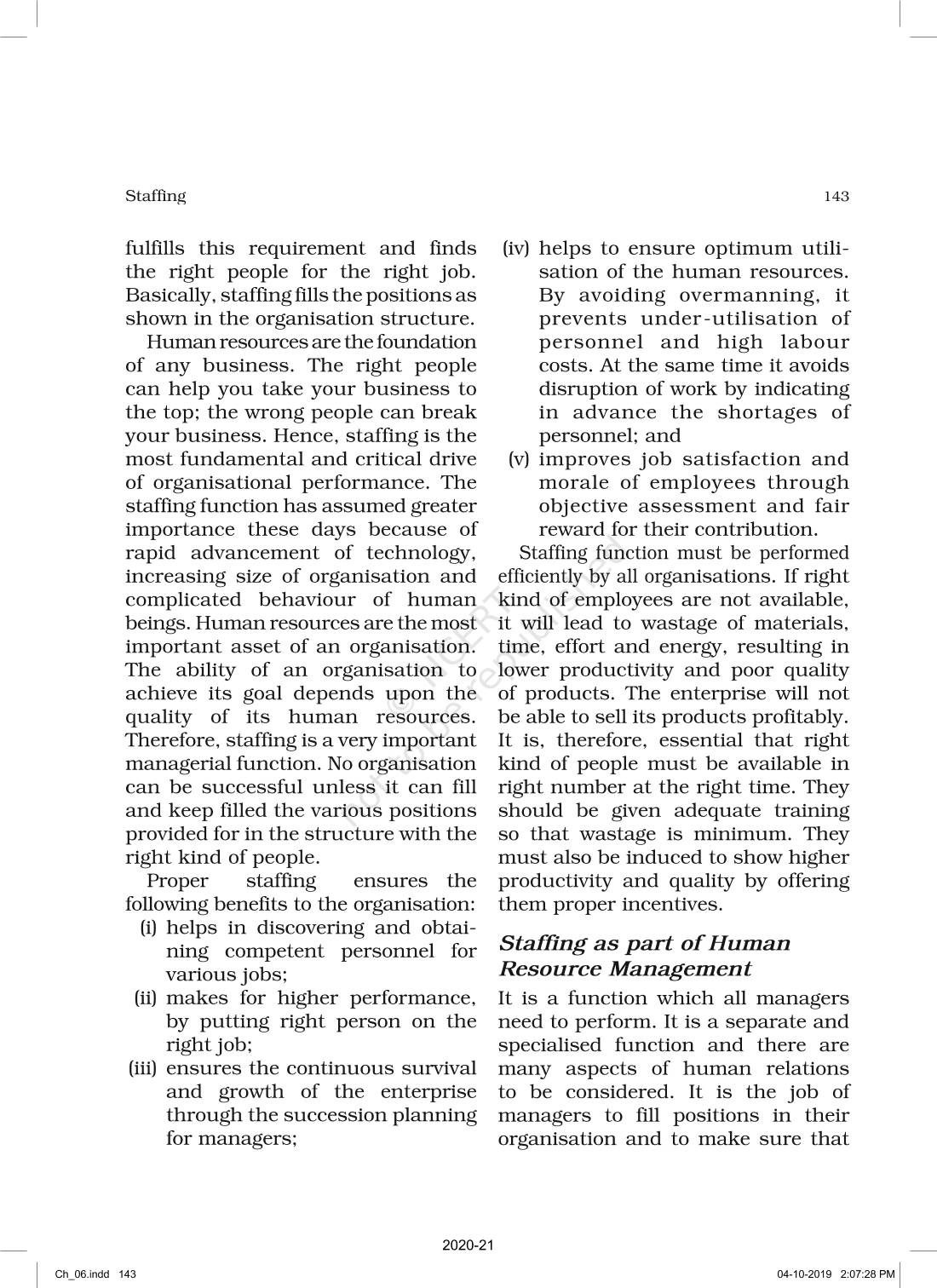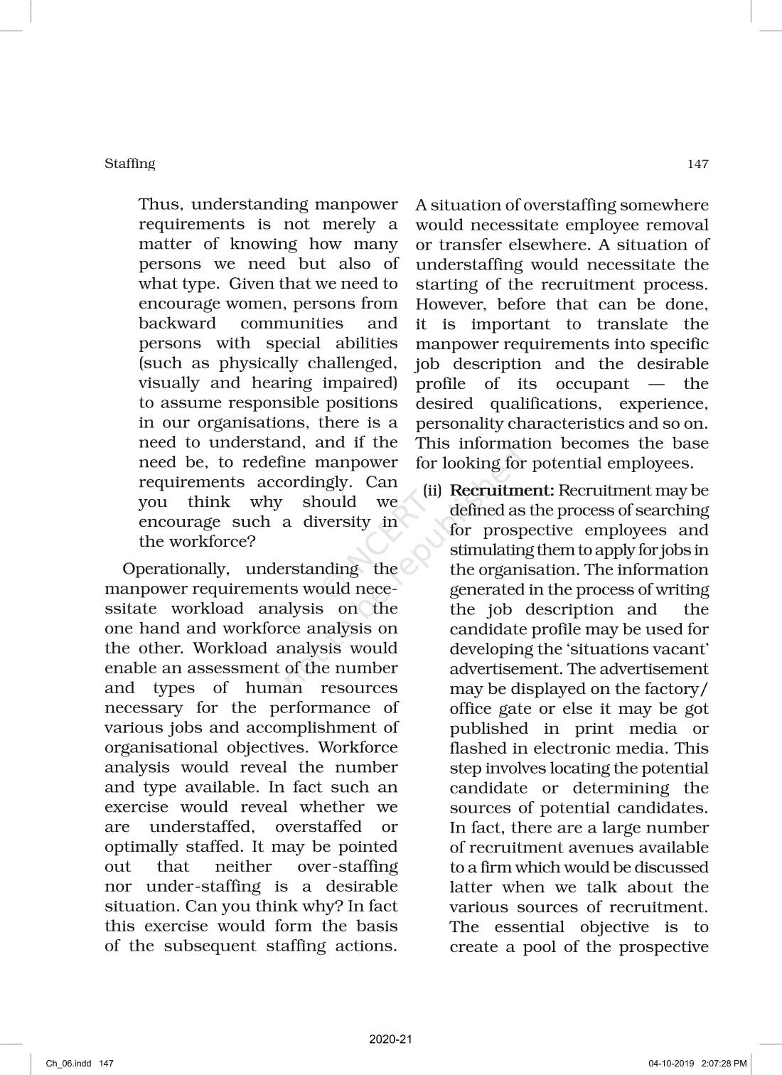The time when students had limited options of choice for NCERT books wherein they need to go to the bookstore to buy the books but here at BeTrained.in, you can read the complete chapter-Staffing of NCERT books for class 12 Business Studies Part I. If CBSE class 12 students are finding it hard to search for NCERT Business Studies Part I books online, then this is the right place as we have provided the textbooks of NCERT chapter wise. These books are available on our website for free along with NCERT Solutions and Exemplar solutions.