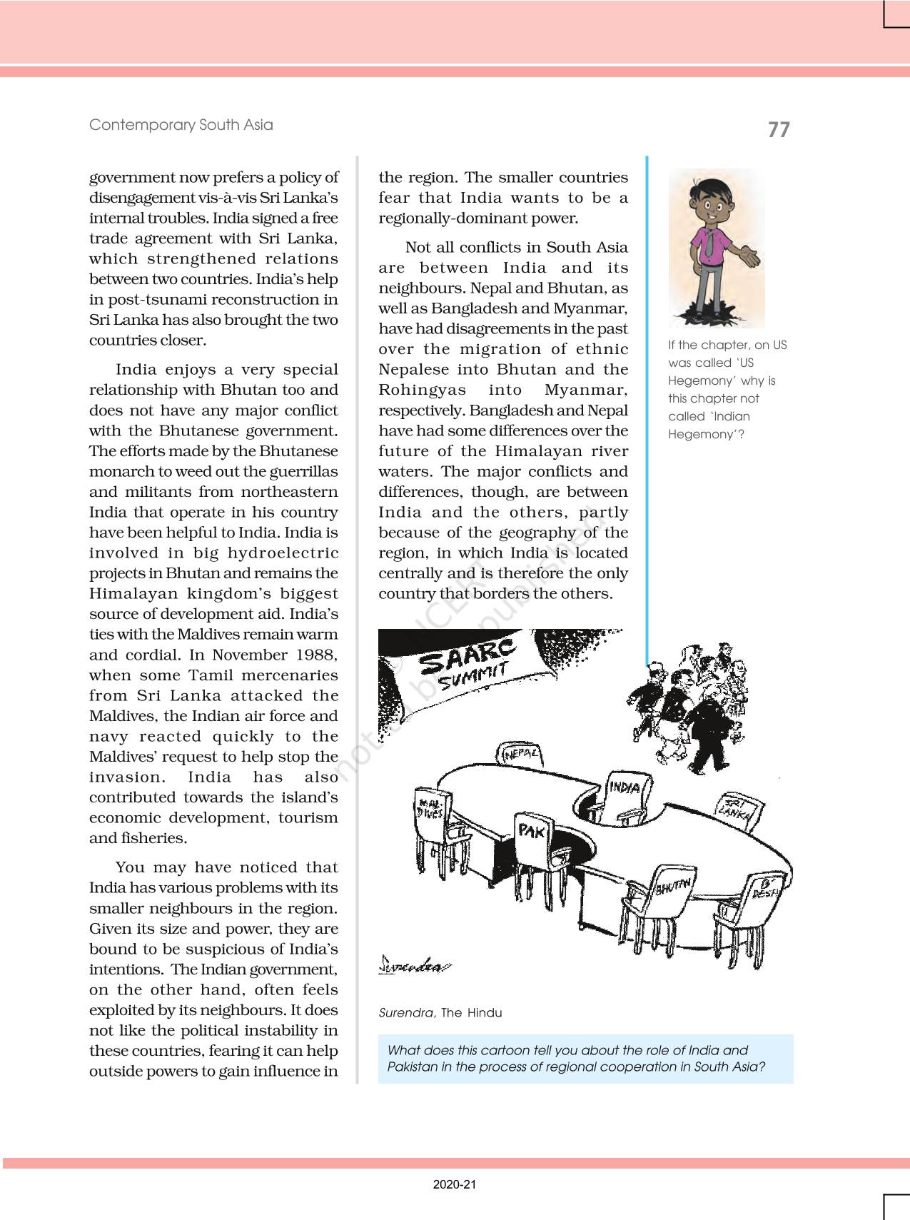 The time when students had limited options of choice for NCERT books wherein they need to go to the bookstore to buy the books but here at BeTrained.in, you can read the complete chapter-Contemporary South Asia of NCERT books for class 12 Contemporary World Politics. If CBSE class 12 students are finding it hard to search for NCERT Contemporary World Politics books online, then this is the right place as we have provided the textbooks of NCERT chapter wise. These books are available on our website for free along with NCERT Solutions and Exemplar solutions.
