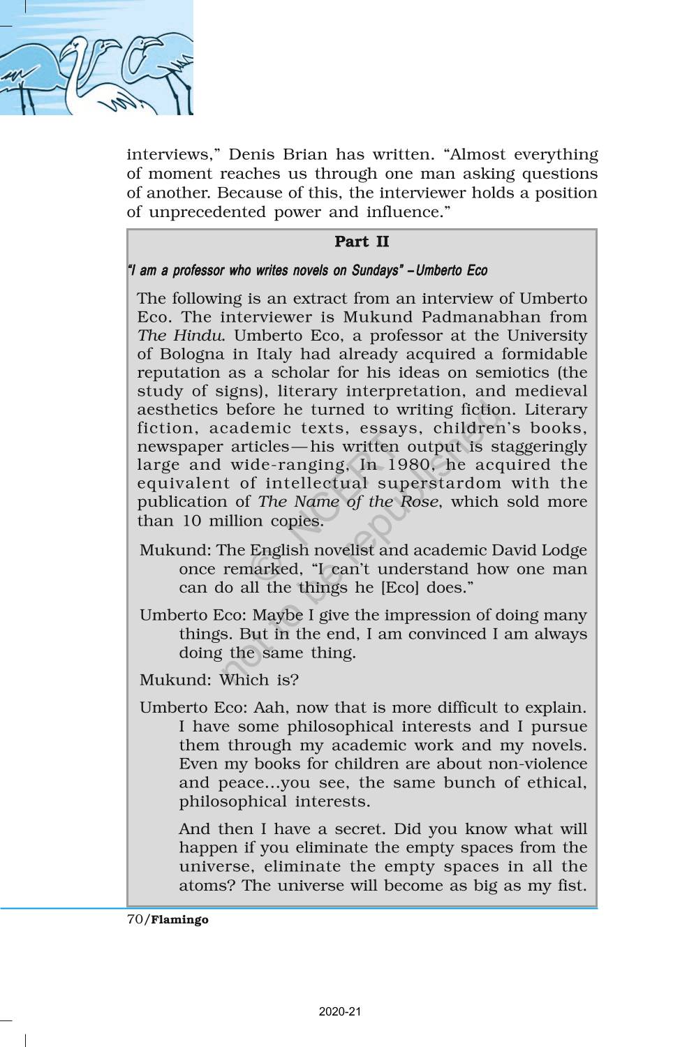 The time when students had limited options of choice for NCERT books wherein they need to go to the bookstore to buy the books but here at BeTrained.in, you can read the complete chapter-Prose 7 The Interview of NCERT books for class 12 Flamingo. If CBSE class 12 students are finding it hard to search for NCERT Flamingo books online, then this is the right place as we have provided the textbooks of NCERT chapter wise. These books are available on our website for free along with NCERT Solutions and Exemplar solutions.