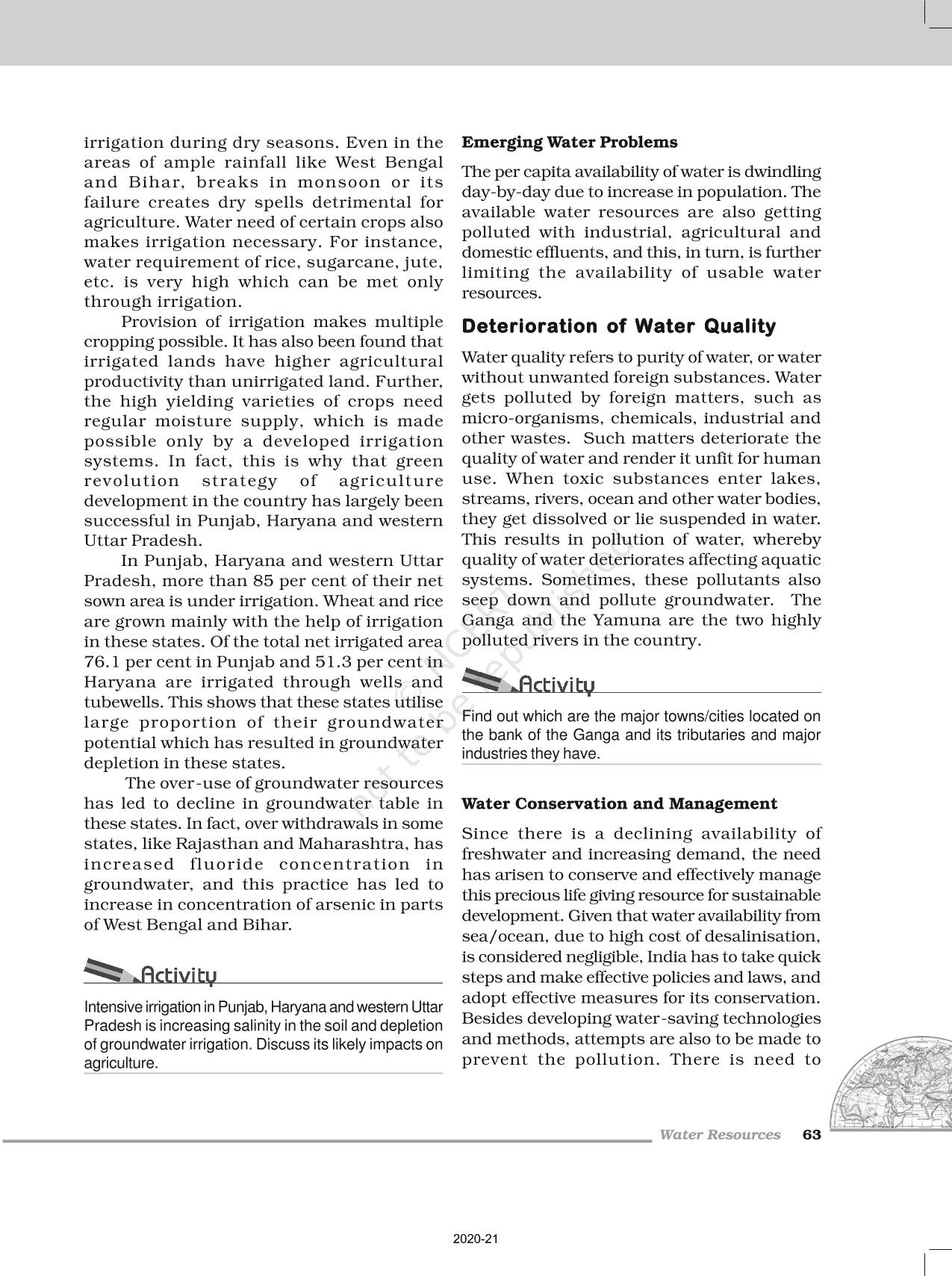 The time when students had limited options of choice for NCERT books wherein they need to go to the bookstore to buy the books but here at BeTrained.in, you can read the complete chapter-Water Resources of NCERT books for class 12 India People And Economy. If CBSE class 12 students are finding it hard to search for NCERT India People And Economy books online, then this is the right place as we have provided the textbooks of NCERT chapter wise. These books are available on our website for free along with NCERT Solutions and Exemplar solutions.