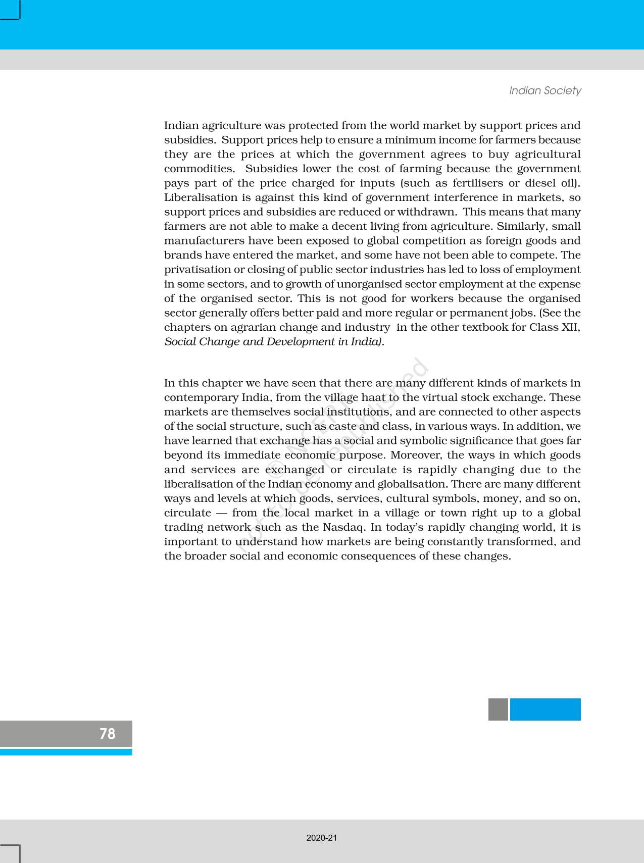 The time when students had limited options of choice for NCERT books wherein they need to go to the bookstore to buy the books but here at BeTrained.in, you can read the complete chapter-The Market As A Social Institution of NCERT books for class 12 Indian Society. If CBSE class 12 students are finding it hard to search for NCERT Indian Society books online, then this is the right place as we have provided the textbooks of NCERT chapter wise. These books are available on our website for free along with NCERT Solutions and Exemplar solutions.