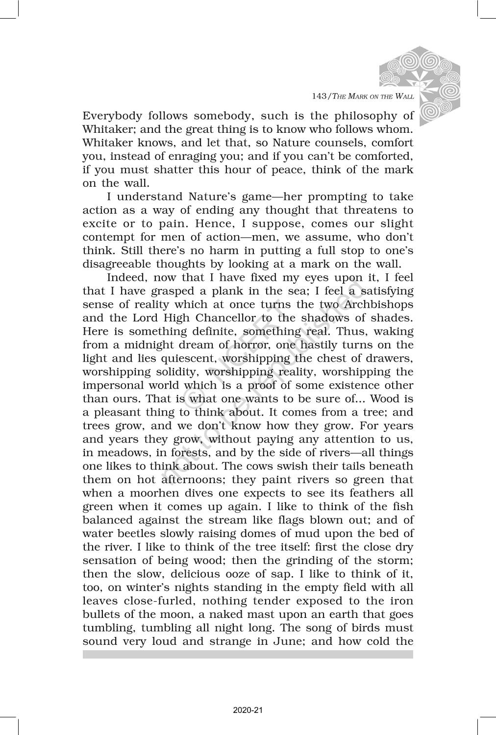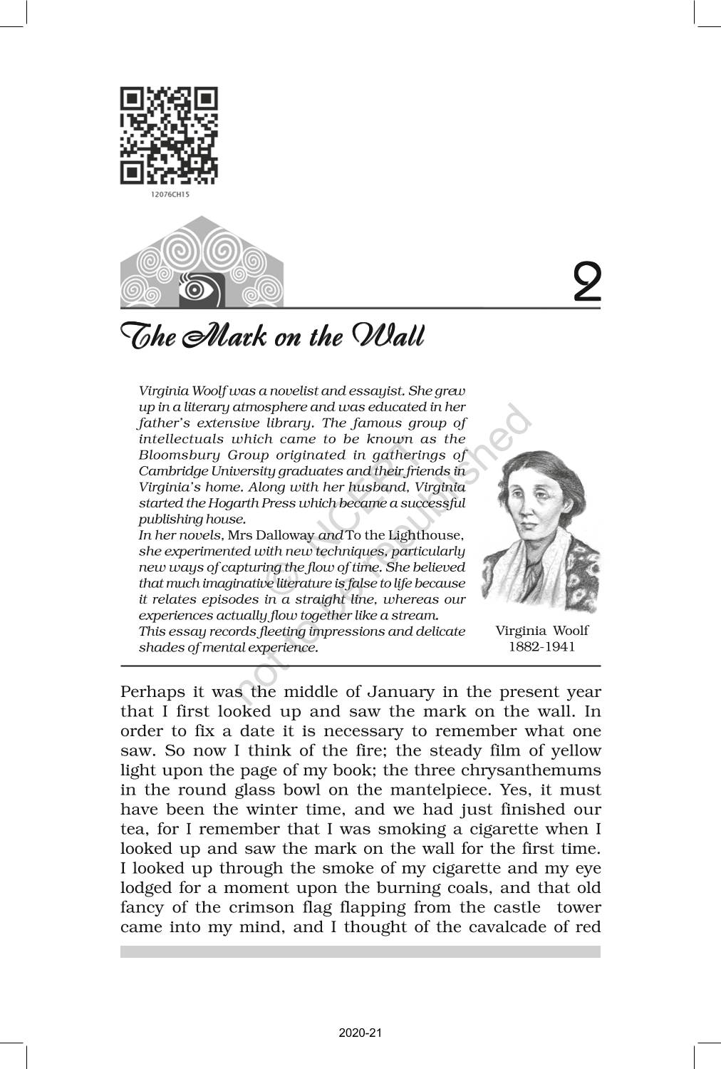 The time when students had limited options of choice for NCERT books wherein they need to go to the bookstore to buy the books but here at BeTrained.in, you can read the complete chapter-Non Fiction 2 The Mark On The Wall of NCERT books for class 12 Kaleidoscope. If CBSE class 12 students are finding it hard to search for NCERT Kaleidoscope books online, then this is the right place as we have provided the textbooks of NCERT chapter wise. These books are available on our website for free along with NCERT Solutions and Exemplar solutions.