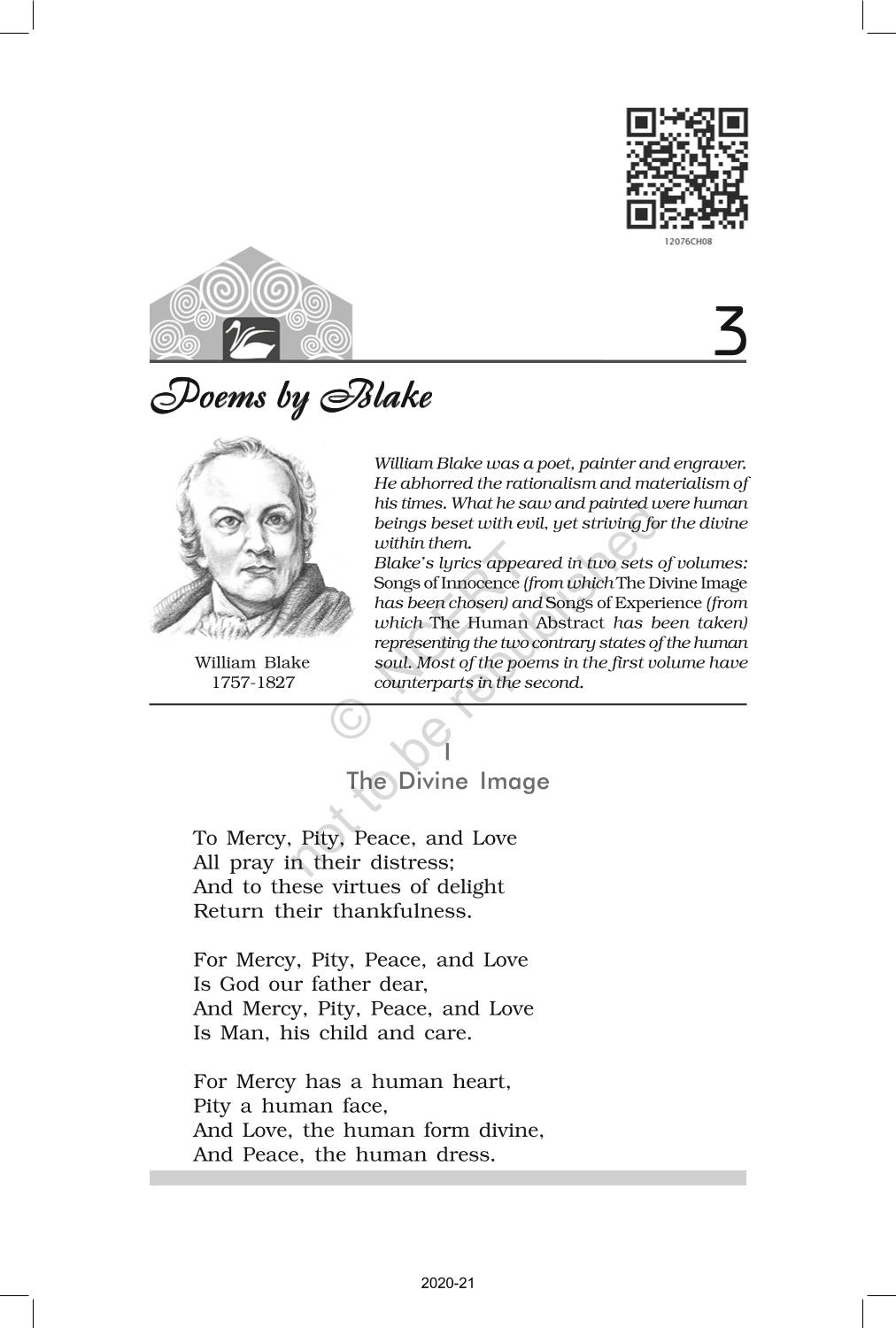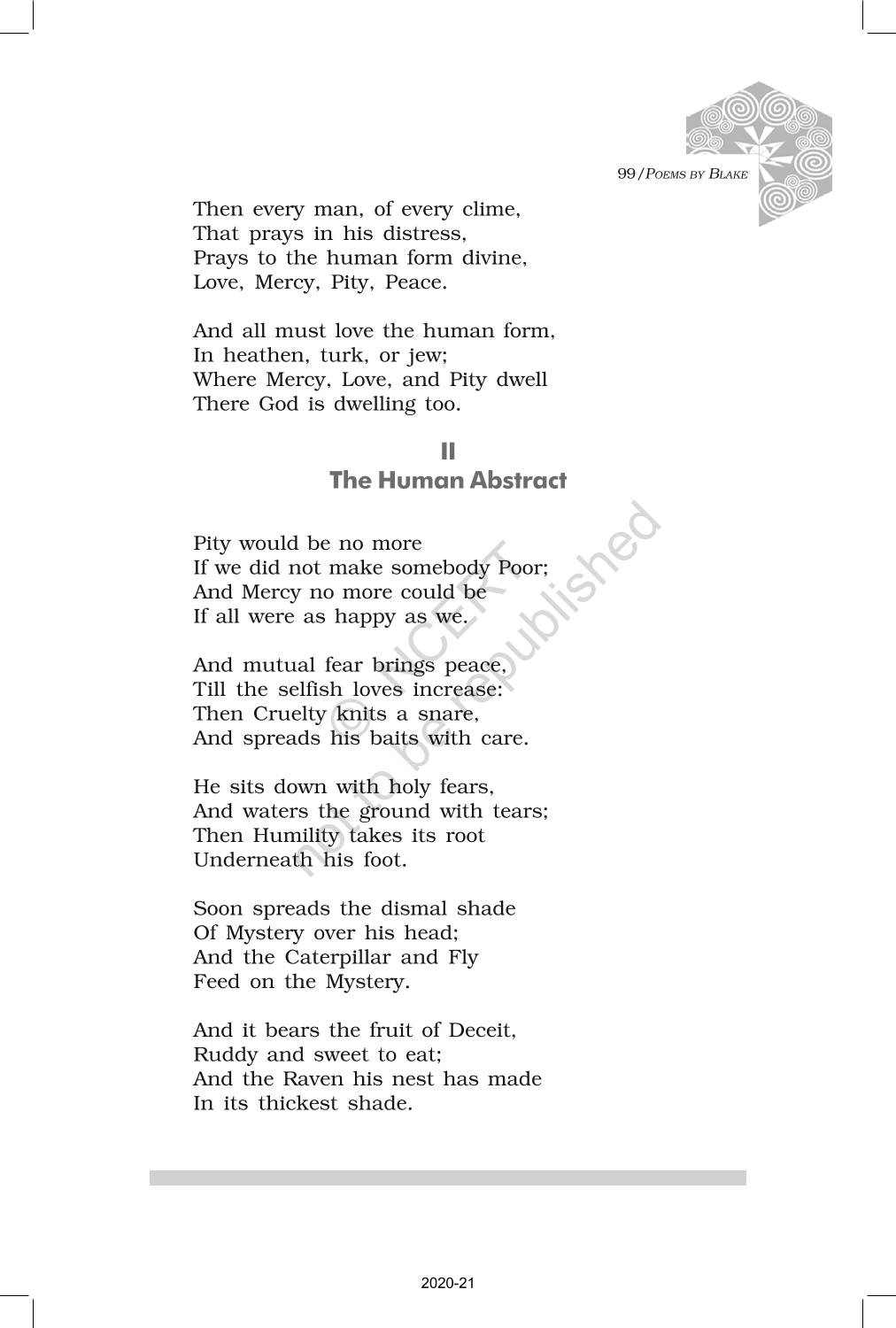The time when students had limited options of choice for NCERT books wherein they need to go to the bookstore to buy the books but here at BeTrained.in, you can read the complete chapter-Poetry 3 Poems By Blake of NCERT books for class 12 Kaleidoscope. If CBSE class 12 students are finding it hard to search for NCERT Kaleidoscope books online, then this is the right place as we have provided the textbooks of NCERT chapter wise. These books are available on our website for free along with NCERT Solutions and Exemplar solutions.