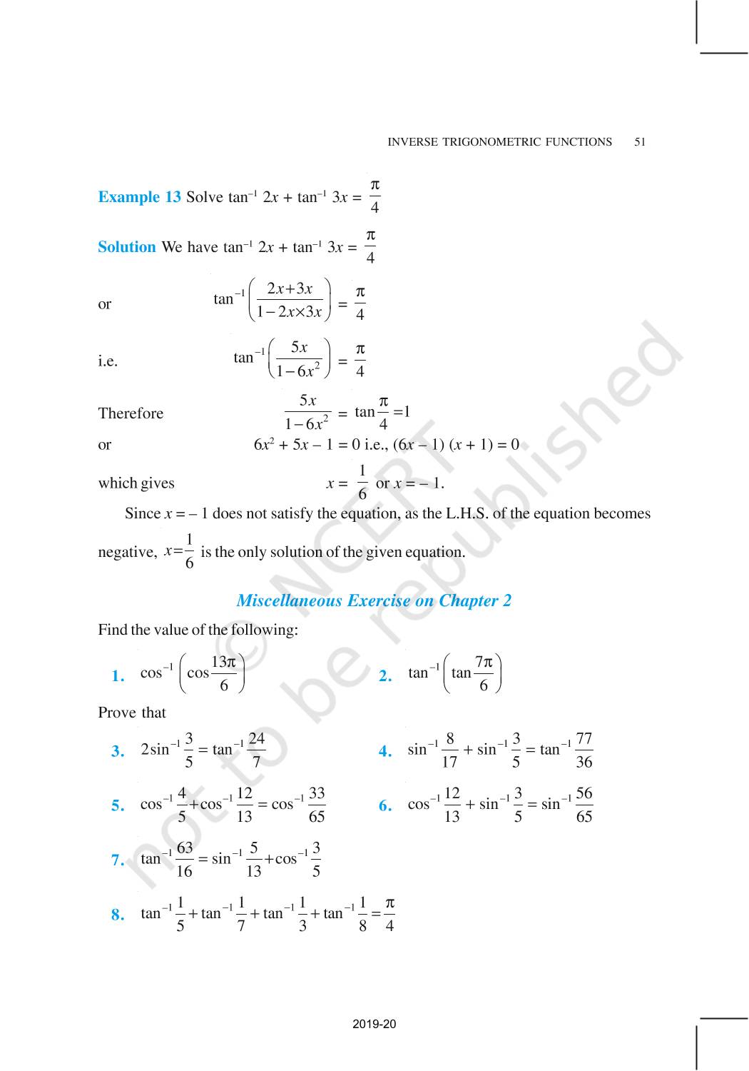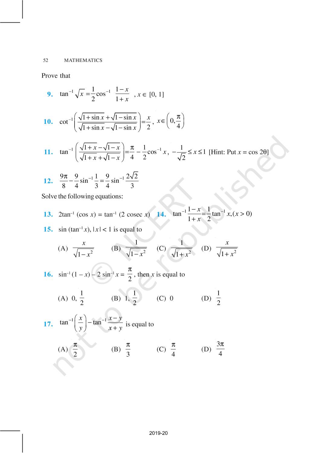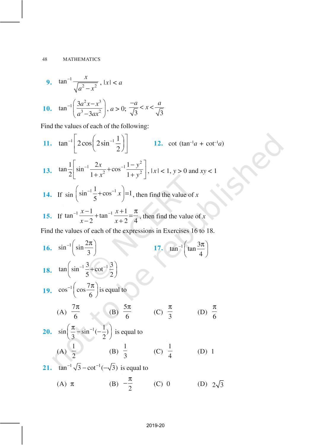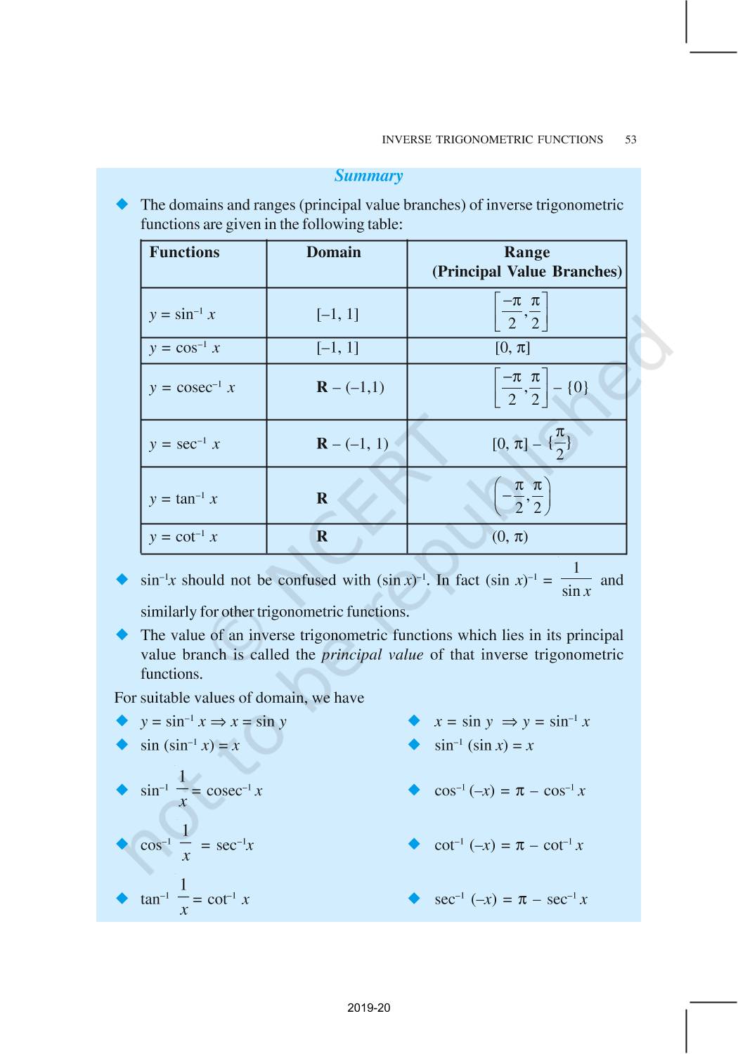 The time when students had limited options of choice for NCERT books wherein they need to go to the bookstore to buy the books but here at BeTrained.in, you can read the complete chapter-Inverse Trigonometric Functions of NCERT books for class 12 Mathematics Part I. If CBSE class 12 students are finding it hard to search for NCERT Mathematics Part I books online, then this is the right place as we have provided the textbooks of NCERT chapter wise. These books are available on our website for free along with NCERT Solutions and Exemplar solutions.