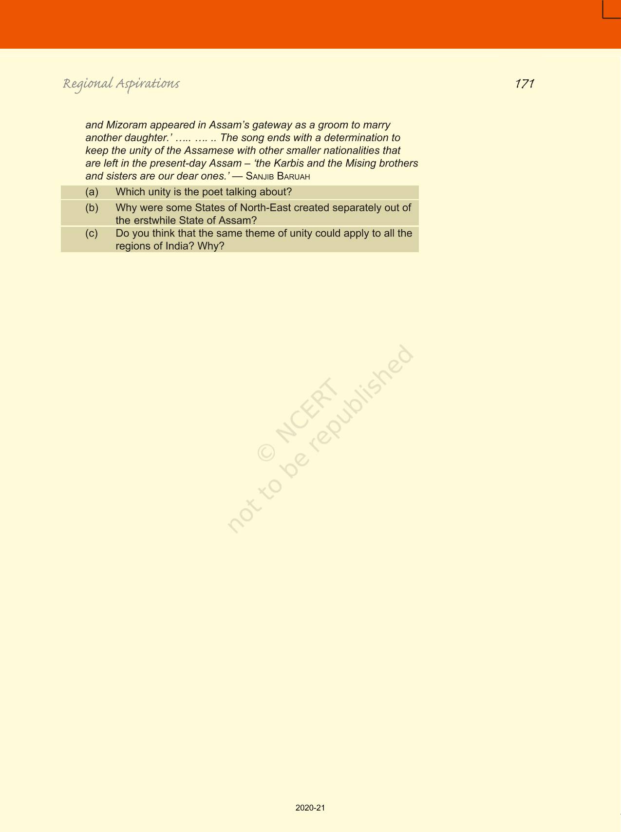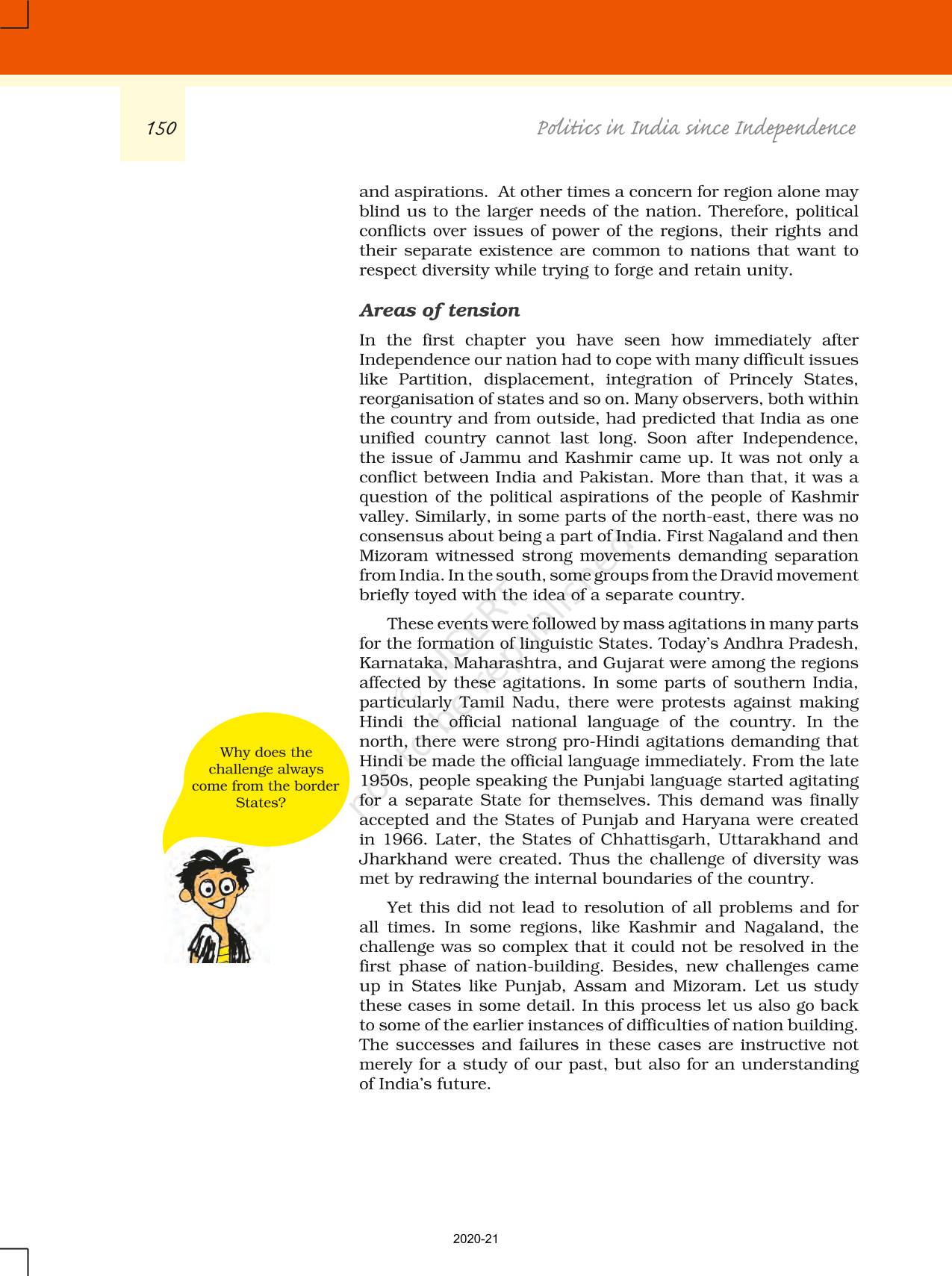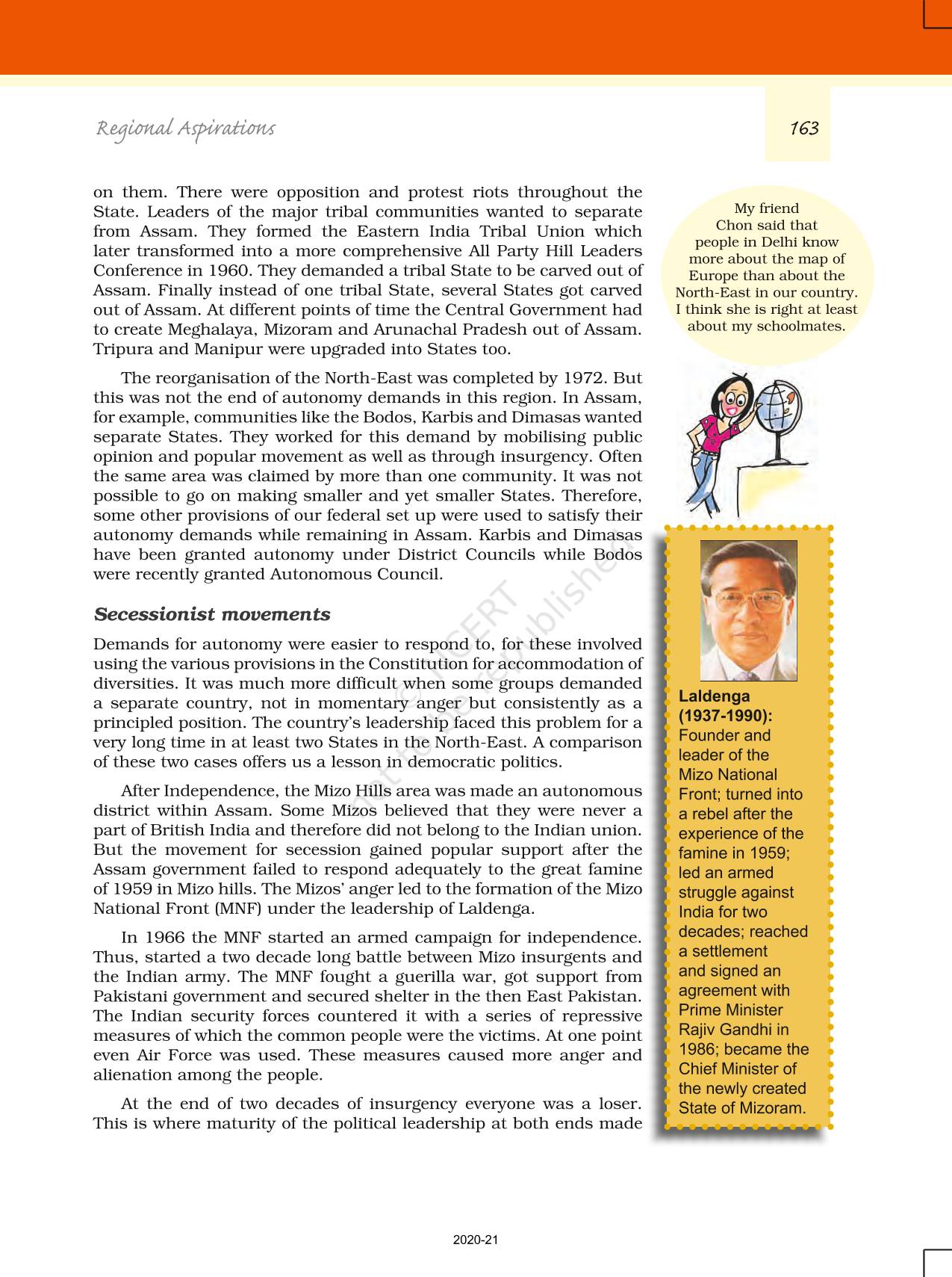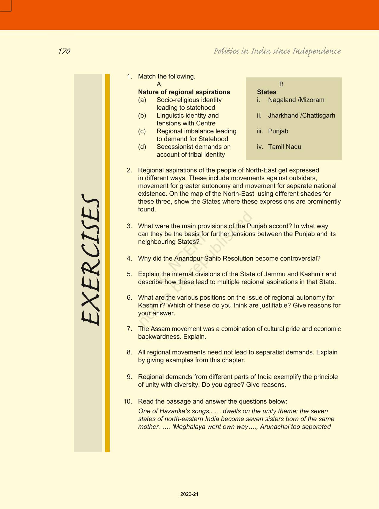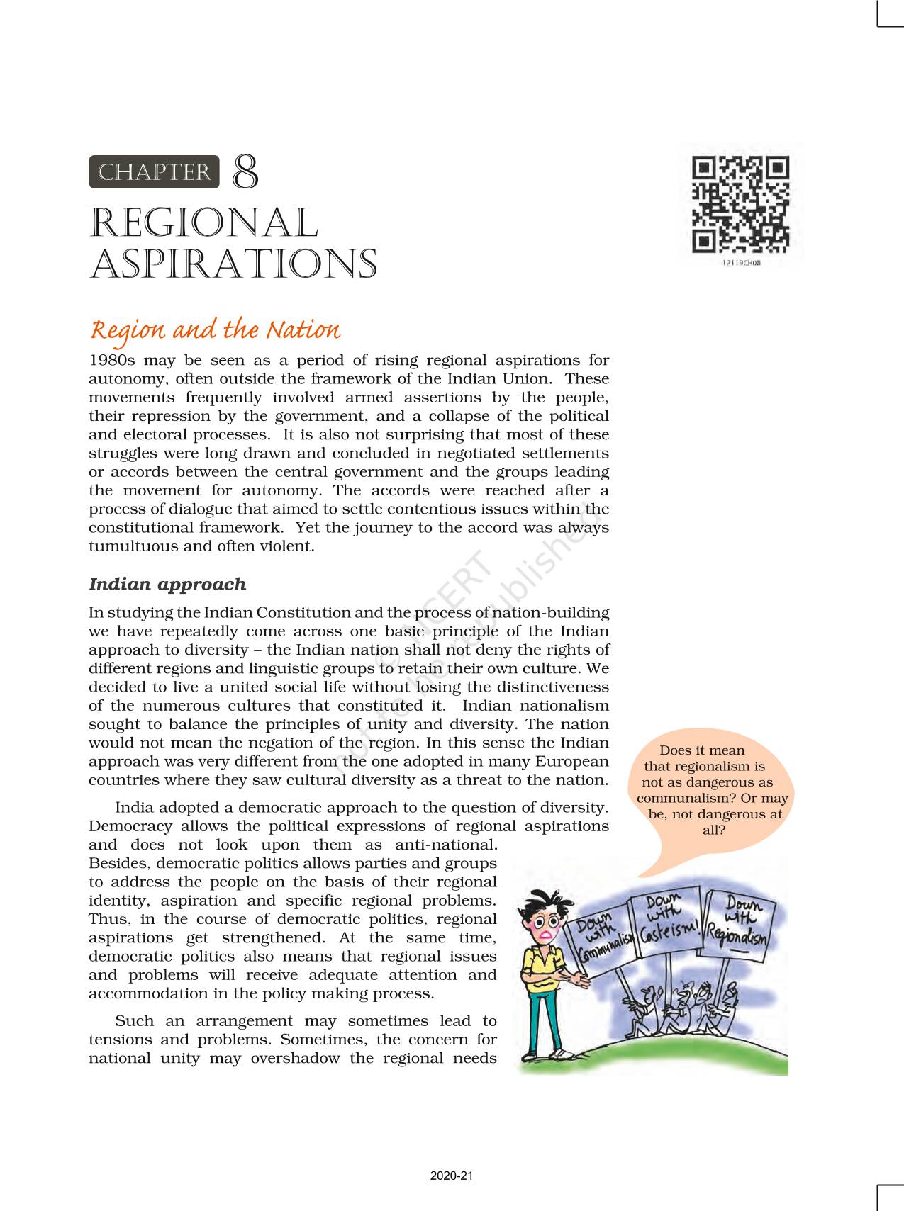 The time when students had limited options of choice for NCERT books wherein they need to go to the bookstore to buy the books but here at BeTrained.in, you can read the complete chapter-Regional Aspirations of NCERT books for class 12 Politics In India Since Independence. If CBSE class 12 students are finding it hard to search for NCERT Politics In India Since Independence books online, then this is the right place as we have provided the textbooks of NCERT chapter wise. These books are available on our website for free along with NCERT Solutions and Exemplar solutions.