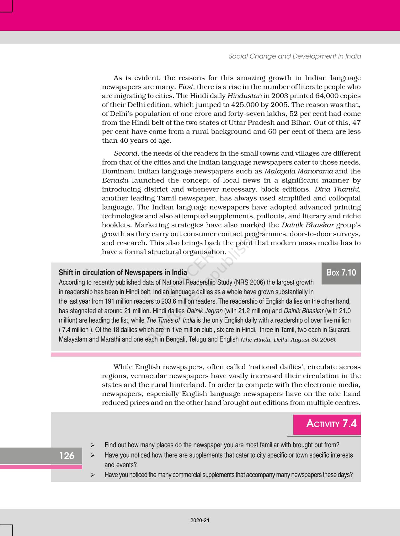 The time when students had limited options of choice for NCERT books wherein they need to go to the bookstore to buy the books but here at BeTrained.in, you can read the complete chapter-Mass Media And Communications of NCERT books for class 12 Social Change And Development In India. If CBSE class 12 students are finding it hard to search for NCERT Social Change And Development In India books online, then this is the right place as we have provided the textbooks of NCERT chapter wise. These books are available on our website for free along with NCERT Solutions and Exemplar solutions.