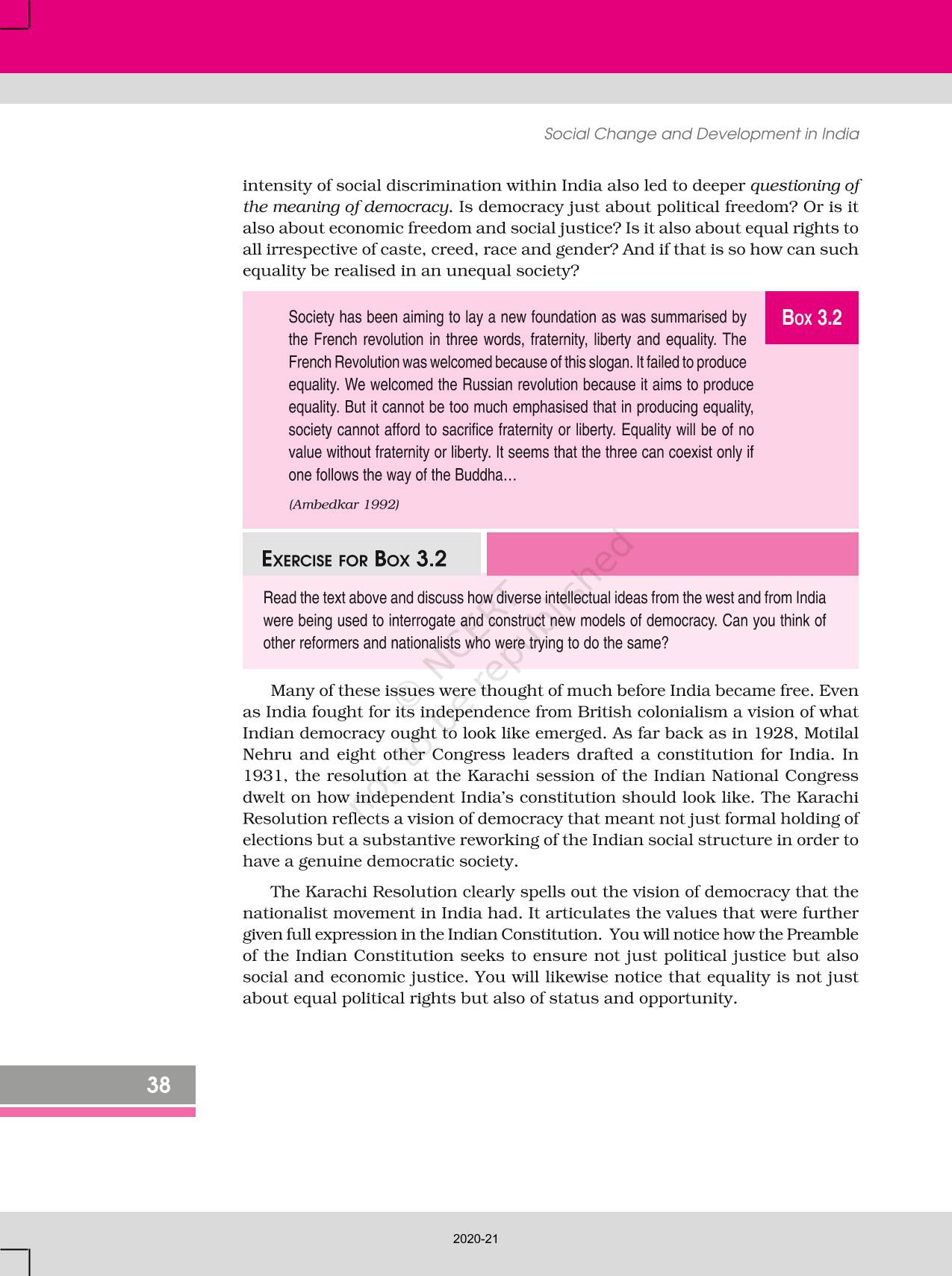The time when students had limited options of choice for NCERT books wherein they need to go to the bookstore to buy the books but here at BeTrained.in, you can read the complete chapter-The Story Of Indian Democracy of NCERT books for class 12 Social Change And Development In India. If CBSE class 12 students are finding it hard to search for NCERT Social Change And Development In India books online, then this is the right place as we have provided the textbooks of NCERT chapter wise. These books are available on our website for free along with NCERT Solutions and Exemplar solutions.