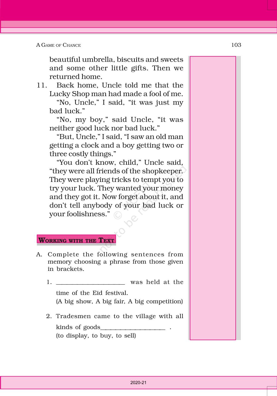 The time when students had limited options of choice for NCERT books wherein they need to go to the bookstore to buy the books but here at BeTrained.in, you can read the complete chapter-A Game Of Chance of NCERT books for class 6 English Honeysuckle. If CBSE class 6 students are finding it hard to search for NCERT English Honeysuckle books online, then this is the right place as we have provided the textbooks of NCERT chapter wise. These books are available on our website for free along with NCERT Solutions and Exemplar solutions.