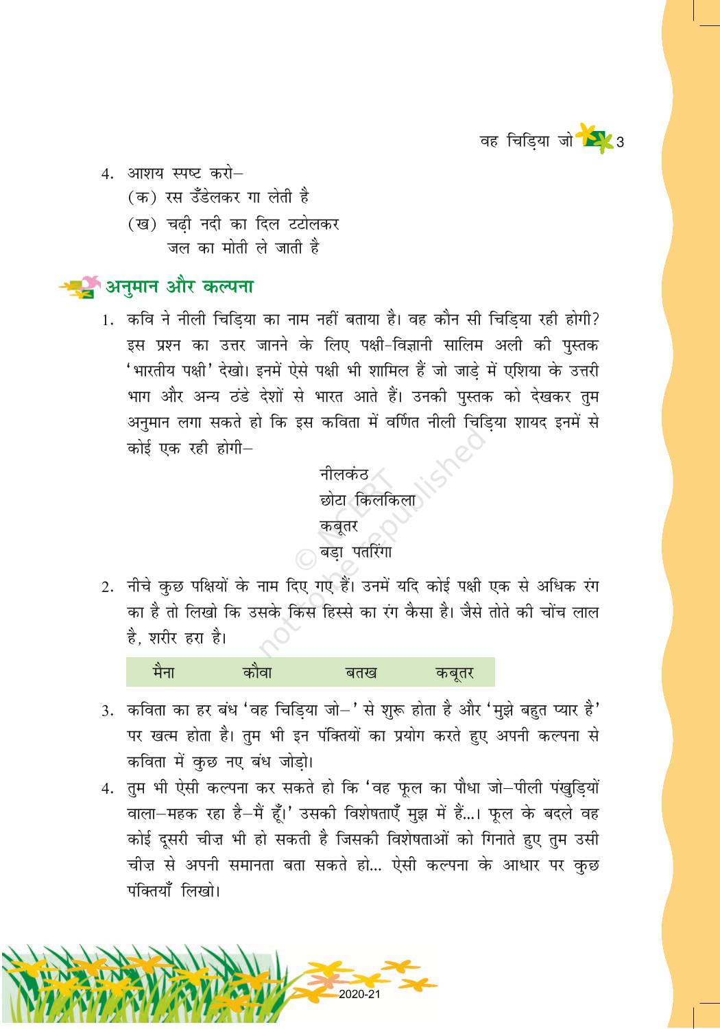The time when students had limited options of choice for NCERT books wherein they need to go to the bookstore to buy the books but here at BeTrained.in, you can read the complete chapter-Vah Chidiya Jo of NCERT books for class 6 Hindi Vasant Part 1. If CBSE class 6 students are finding it hard to search for NCERT Hindi Vasant Part 1 books online, then this is the right place as we have provided the textbooks of NCERT chapter wise. These books are available on our website for free along with NCERT Solutions and Exemplar solutions.
