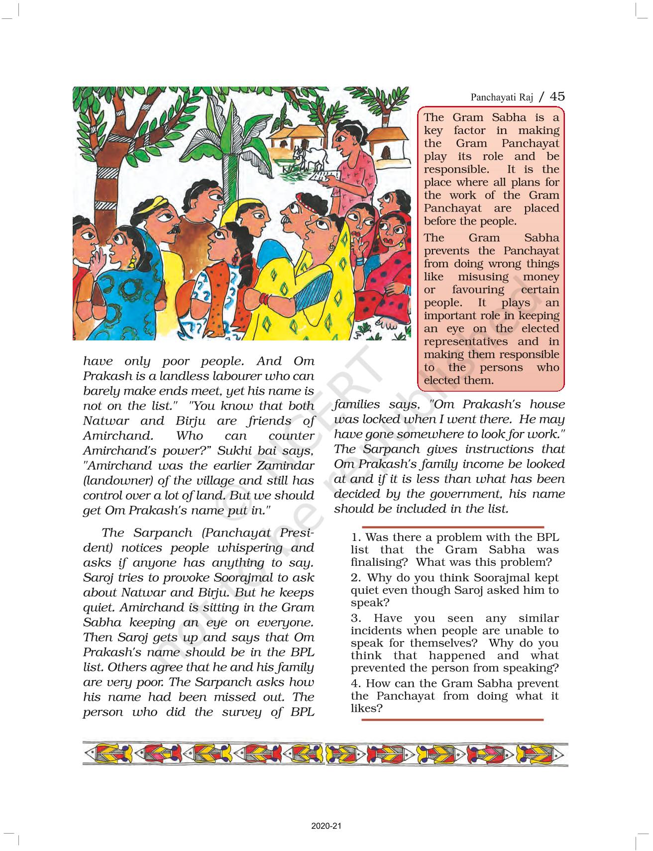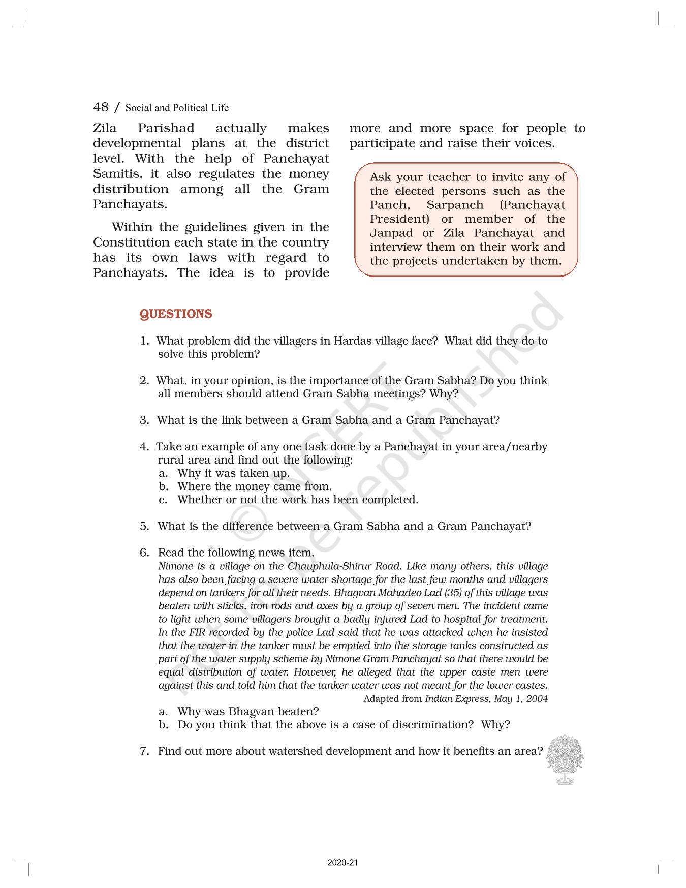 The time when students had limited options of choice for NCERT books wherein they need to go to the bookstore to buy the books but here at BeTrained.in, you can read the complete chapter-Panchayati Raj of NCERT books for class 6 Political Science Social And Political Life I. If CBSE class 6 students are finding it hard to search for NCERT Political Science Social And Political Life I books online, then this is the right place as we have provided the textbooks of NCERT chapter wise. These books are available on our website for free along with NCERT Solutions and Exemplar solutions.