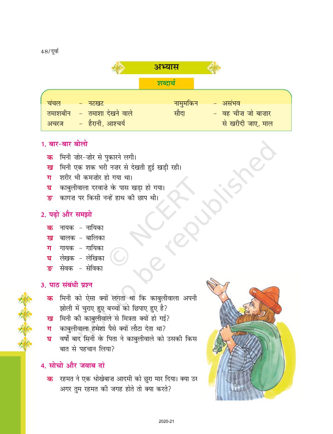 The time when students had limited options of choice for NCERT books wherein they need to go to the bookstore to buy the books but here at BeTrained.in, you can read the complete chapter-Kaabulivaala of NCERT books for class 7 Hindi Durva Part 2. If CBSE class 7 students are finding it hard to search for NCERT Hindi Durva Part 2 books online, then this is the right place as we have provided the textbooks of NCERT chapter wise. These books are available on our website for free along with NCERT Solutions and Exemplar solutions.