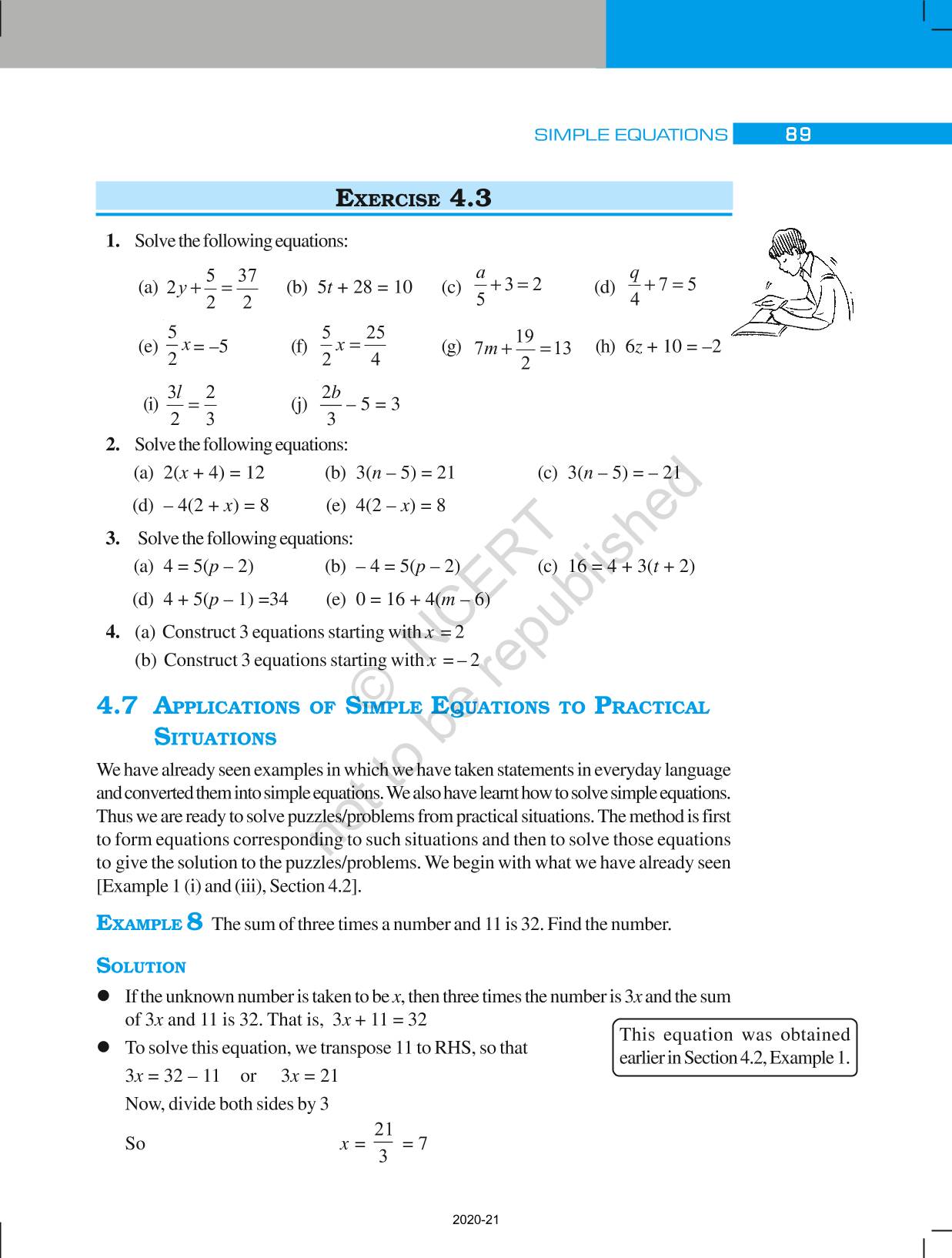The time when students had limited options of choice for NCERT books wherein they need to go to the bookstore to buy the books but here at BeTrained.in, you can read the complete chapter-Simple Equations of NCERT books for class 7 Mathematics. If CBSE class 7 students are finding it hard to search for NCERT Mathematics books online, then this is the right place as we have provided the textbooks of NCERT chapter wise. These books are available on our website for free along with NCERT Solutions and Exemplar solutions.