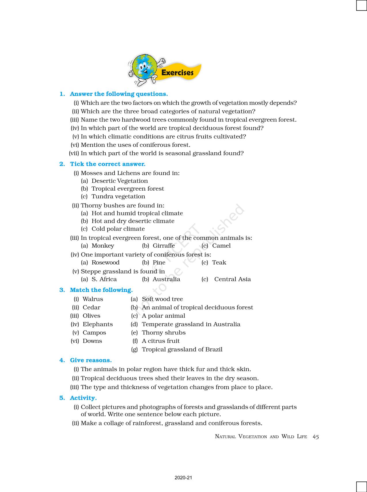 The time when students had limited options of choice for NCERT books wherein they need to go to the bookstore to buy the books but here at BeTrained.in, you can read the complete chapter-Natural Vegetation And Wild Life of NCERT books for class 7 Our Environment. If CBSE class 7 students are finding it hard to search for NCERT Our Environment books online, then this is the right place as we have provided the textbooks of NCERT chapter wise. These books are available on our website for free along with NCERT Solutions and Exemplar solutions.