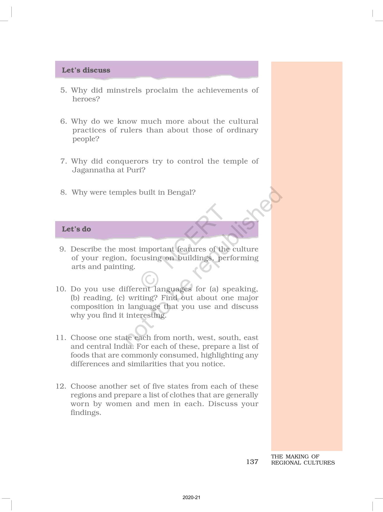 The time when students had limited options of choice for NCERT books wherein they need to go to the bookstore to buy the books but here at BeTrained.in, you can read the complete chapter-The Making Of Regional Cultures of NCERT books for class 7 Our Pasts II. If CBSE class 7 students are finding it hard to search for NCERT Our Pasts II books online, then this is the right place as we have provided the textbooks of NCERT chapter wise. These books are available on our website for free along with NCERT Solutions and Exemplar solutions.