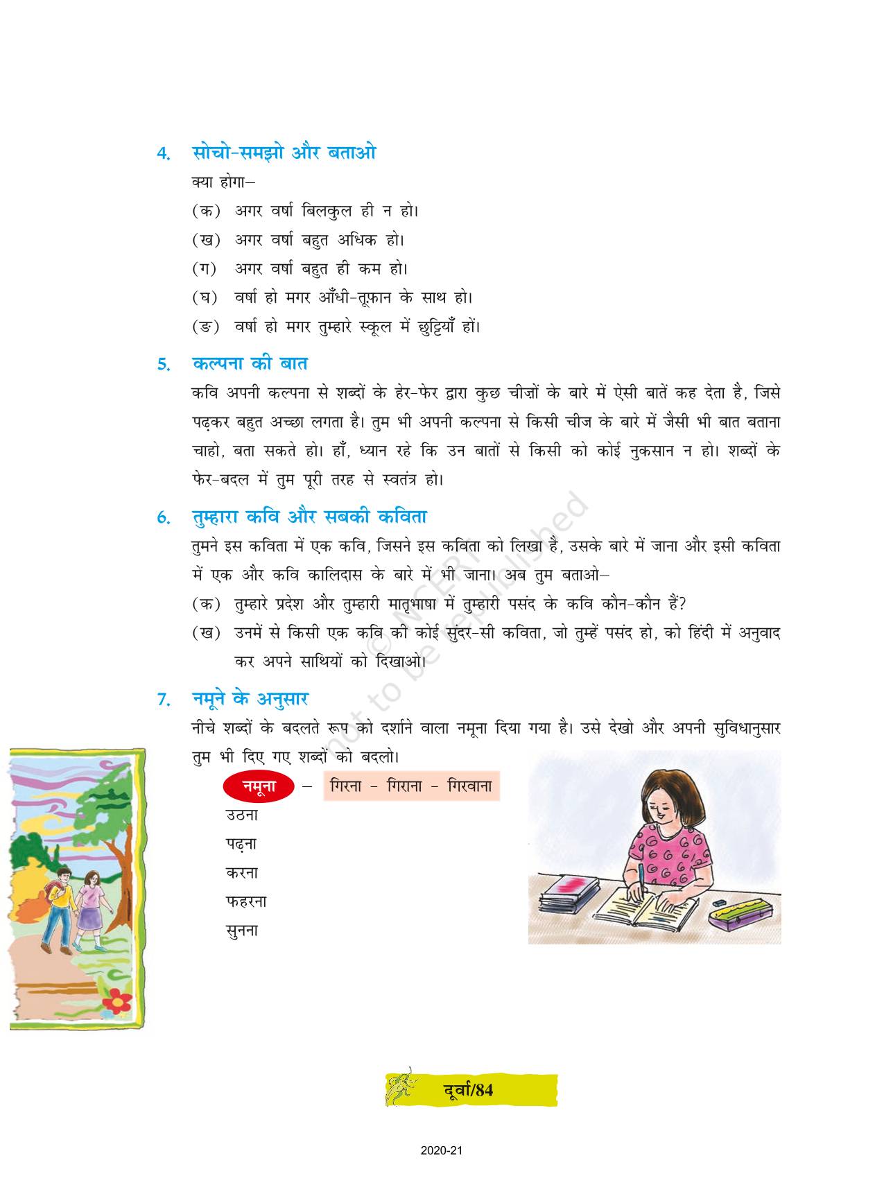 The time when students had limited options of choice for NCERT books wherein they need to go to the bookstore to buy the books but here at BeTrained.in, you can read the complete chapter-Ashaadh Ka Pahla Din of NCERT books for class 8 Hindi Durva Part 3. If CBSE class 8 students are finding it hard to search for NCERT Hindi Durva Part 3 books online, then this is the right place as we have provided the textbooks of NCERT chapter wise. These books are available on our website for free along with NCERT Solutions and Exemplar solutions.