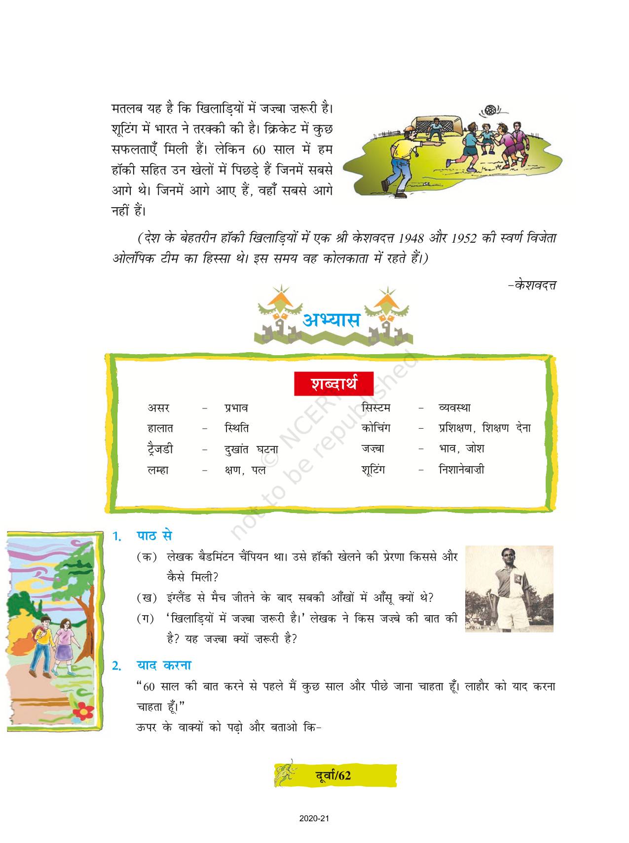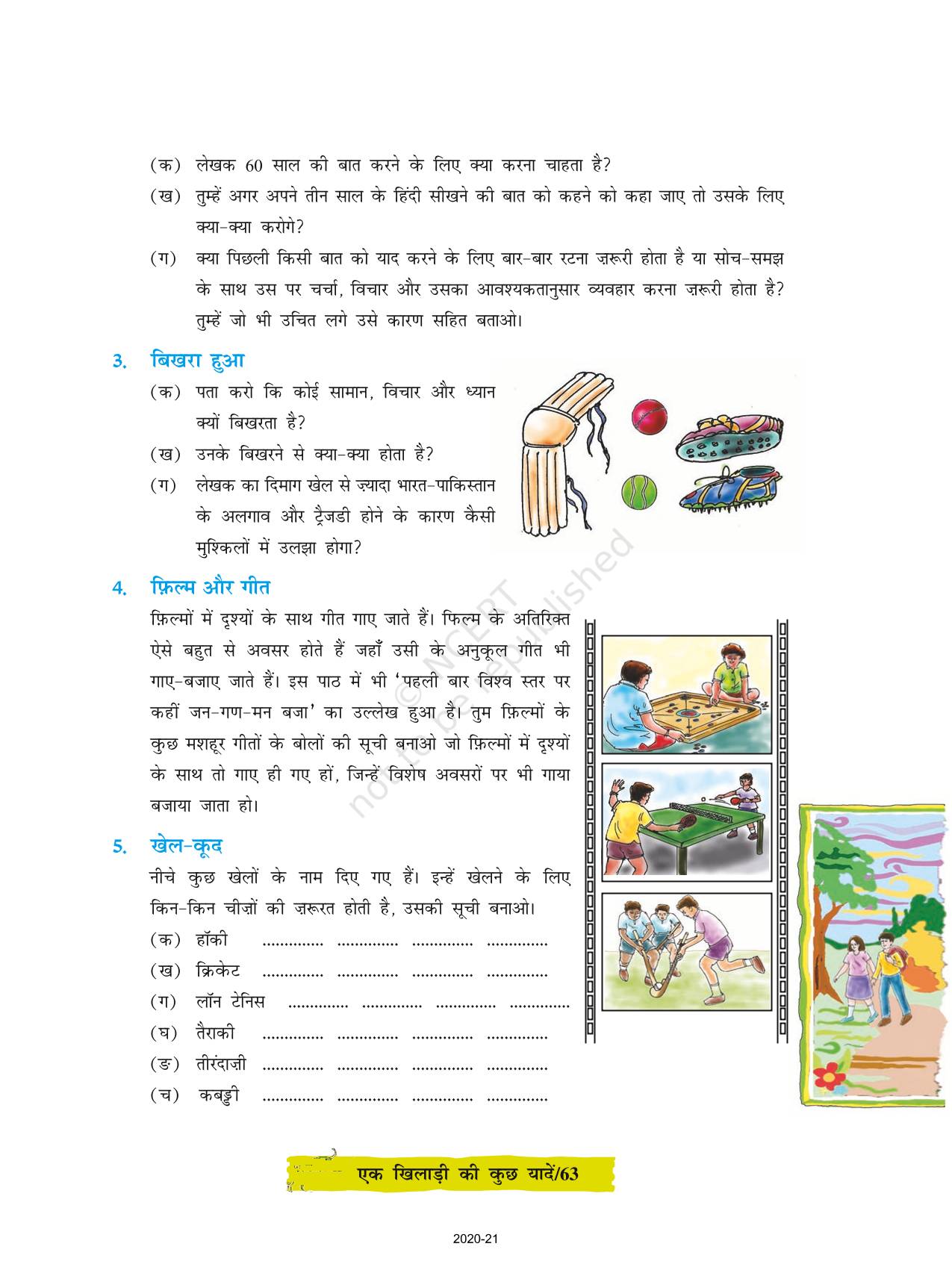 The time when students had limited options of choice for NCERT books wherein they need to go to the bookstore to buy the books but here at BeTrained.in, you can read the complete chapter-Ek Khilaadi Kee Kuchh Yaadein of NCERT books for class 8 Hindi Durva Part 3. If CBSE class 8 students are finding it hard to search for NCERT Hindi Durva Part 3 books online, then this is the right place as we have provided the textbooks of NCERT chapter wise. These books are available on our website for free along with NCERT Solutions and Exemplar solutions.