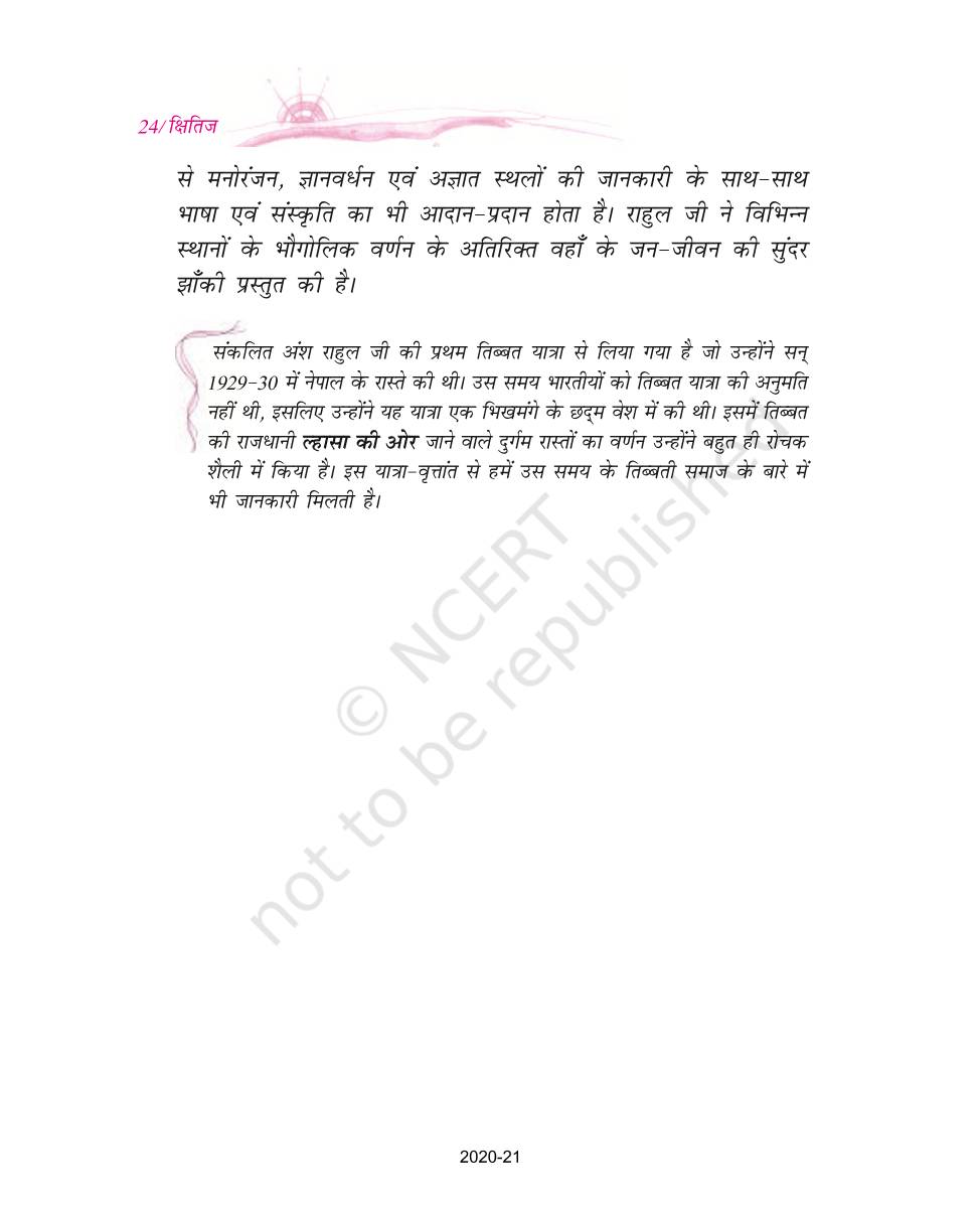 The time when students had limited options of choice for NCERT books wherein they need to go to the bookstore to buy the books but here at BeTrained.in, you can read the complete chapter-Lhasa Ki Or of NCERT books for class 9 Hindi Kshitij Part 1. If CBSE class 9 students are finding it hard to search for NCERT Hindi Kshitij Part 1 books online, then this is the right place as we have provided the textbooks of NCERT chapter wise. These books are available on our website for free along with NCERT Solutions and Exemplar solutions.