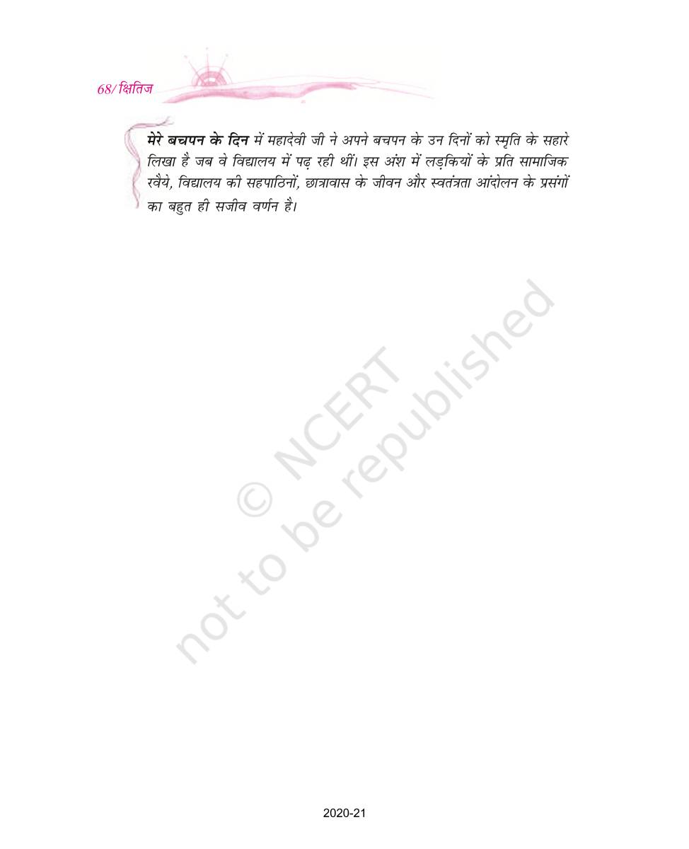 The time when students had limited options of choice for NCERT books wherein they need to go to the bookstore to buy the books but here at BeTrained.in, you can read the complete chapter-Mere Bachpan Ke Din of NCERT books for class 9 Hindi Kshitij Part 1. If CBSE class 9 students are finding it hard to search for NCERT Hindi Kshitij Part 1 books online, then this is the right place as we have provided the textbooks of NCERT chapter wise. These books are available on our website for free along with NCERT Solutions and Exemplar solutions.
