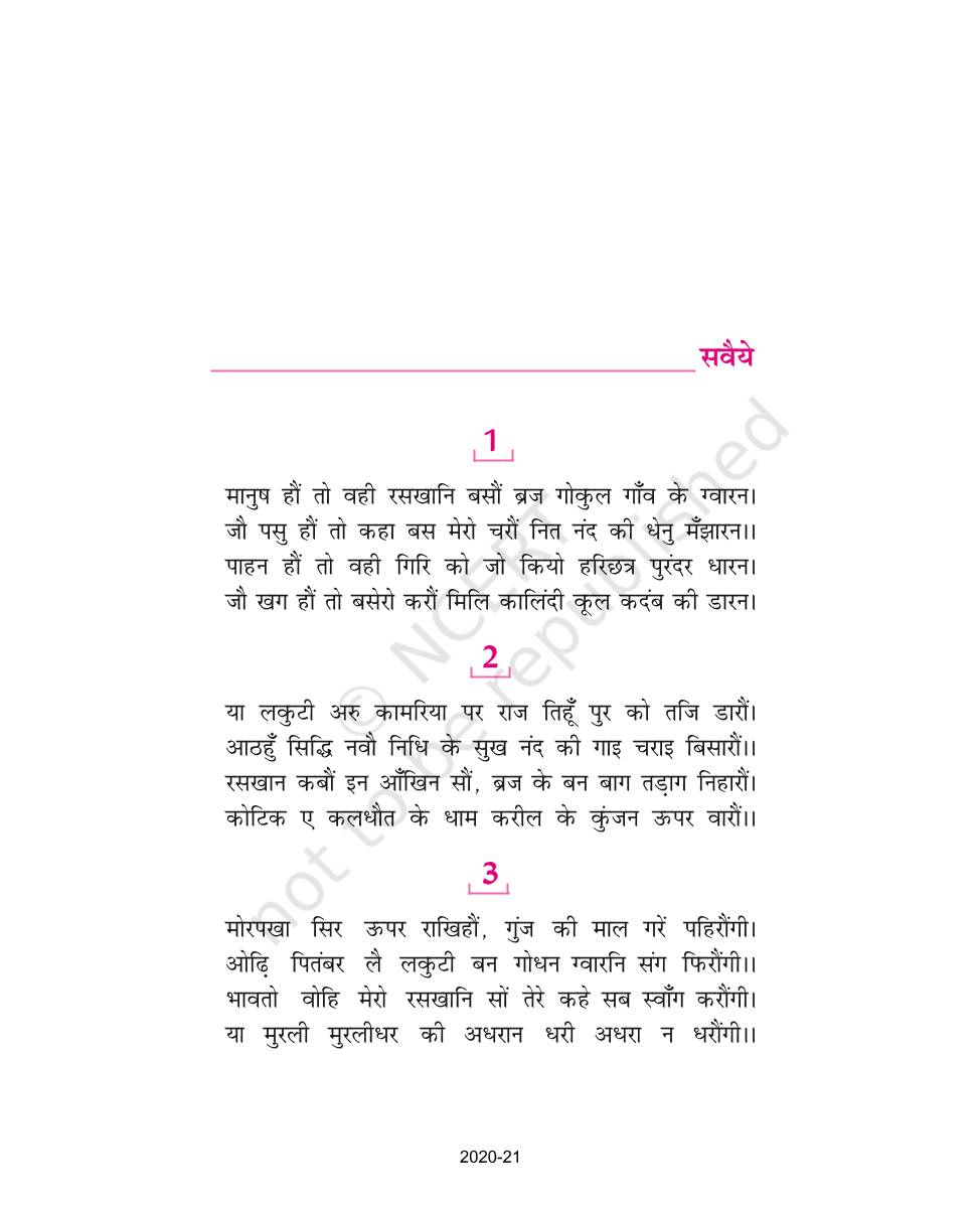 The time when students had limited options of choice for NCERT books wherein they need to go to the bookstore to buy the books but here at BeTrained.in, you can read the complete chapter-Savaiye of NCERT books for class 9 Hindi Kshitij Part 1. If CBSE class 9 students are finding it hard to search for NCERT Hindi Kshitij Part 1 books online, then this is the right place as we have provided the textbooks of NCERT chapter wise. These books are available on our website for free along with NCERT Solutions and Exemplar solutions.