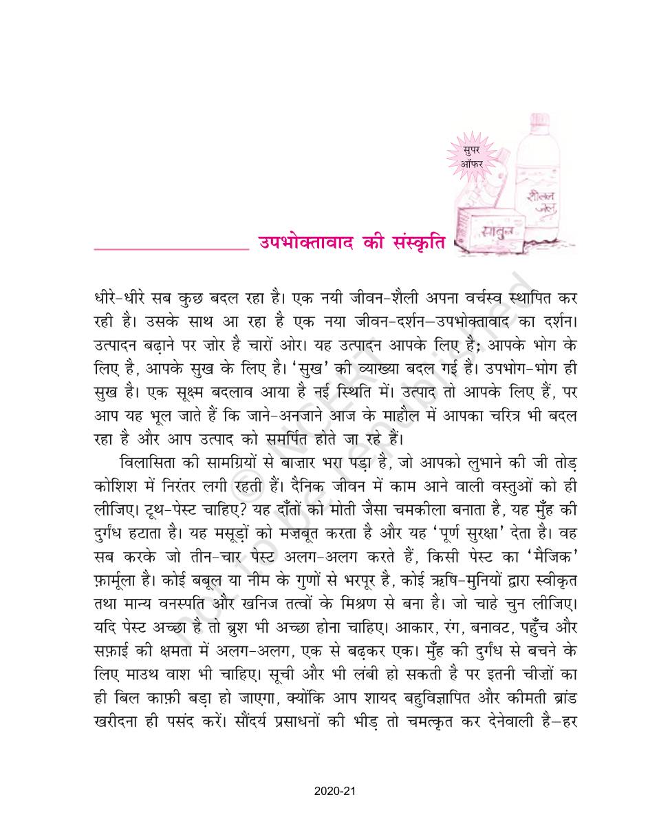 The time when students had limited options of choice for NCERT books wherein they need to go to the bookstore to buy the books but here at BeTrained.in, you can read the complete chapter-Upbhoktavad Ki Sanskriti of NCERT books for class 9 Hindi Kshitij Part 1. If CBSE class 9 students are finding it hard to search for NCERT Hindi Kshitij Part 1 books online, then this is the right place as we have provided the textbooks of NCERT chapter wise. These books are available on our website for free along with NCERT Solutions and Exemplar solutions.