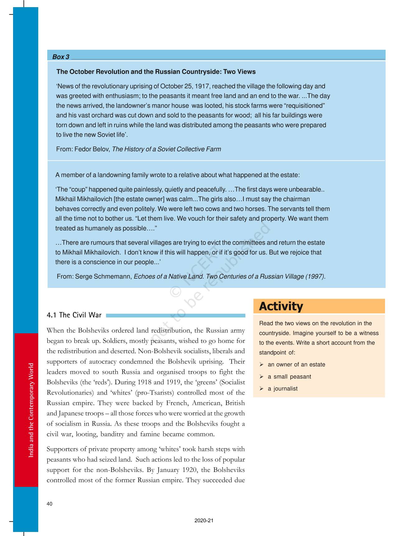 The time when students had limited options of choice for NCERT books wherein they need to go to the bookstore to buy the books but here at BeTrained.in, you can read the complete chapter-Socialism In Europe And The Russian Revolution of NCERT books for class 9 History India And The Contemporary World I. If CBSE class 9 students are finding it hard to search for NCERT History India And The Contemporary World I books online, then this is the right place as we have provided the textbooks of NCERT chapter wise. These books are available on our website for free along with NCERT Solutions and Exemplar solutions.
