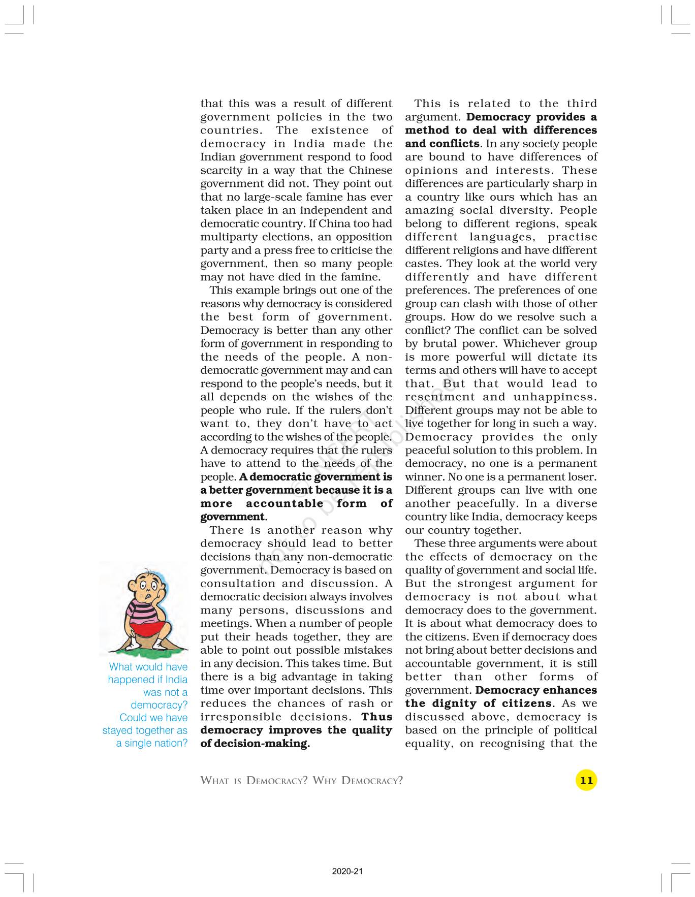 The time when students had limited options of choice for NCERT books wherein they need to go to the bookstore to buy the books but here at BeTrained.in, you can read the complete chapter-What Is Democracy Why Democracy of NCERT books for class 9 Political Science Democratic Politics I. If CBSE class 9 students are finding it hard to search for NCERT Political Science Democratic Politics I books online, then this is the right place as we have provided the textbooks of NCERT chapter wise. These books are available on our website for free along with NCERT Solutions and Exemplar solutions.