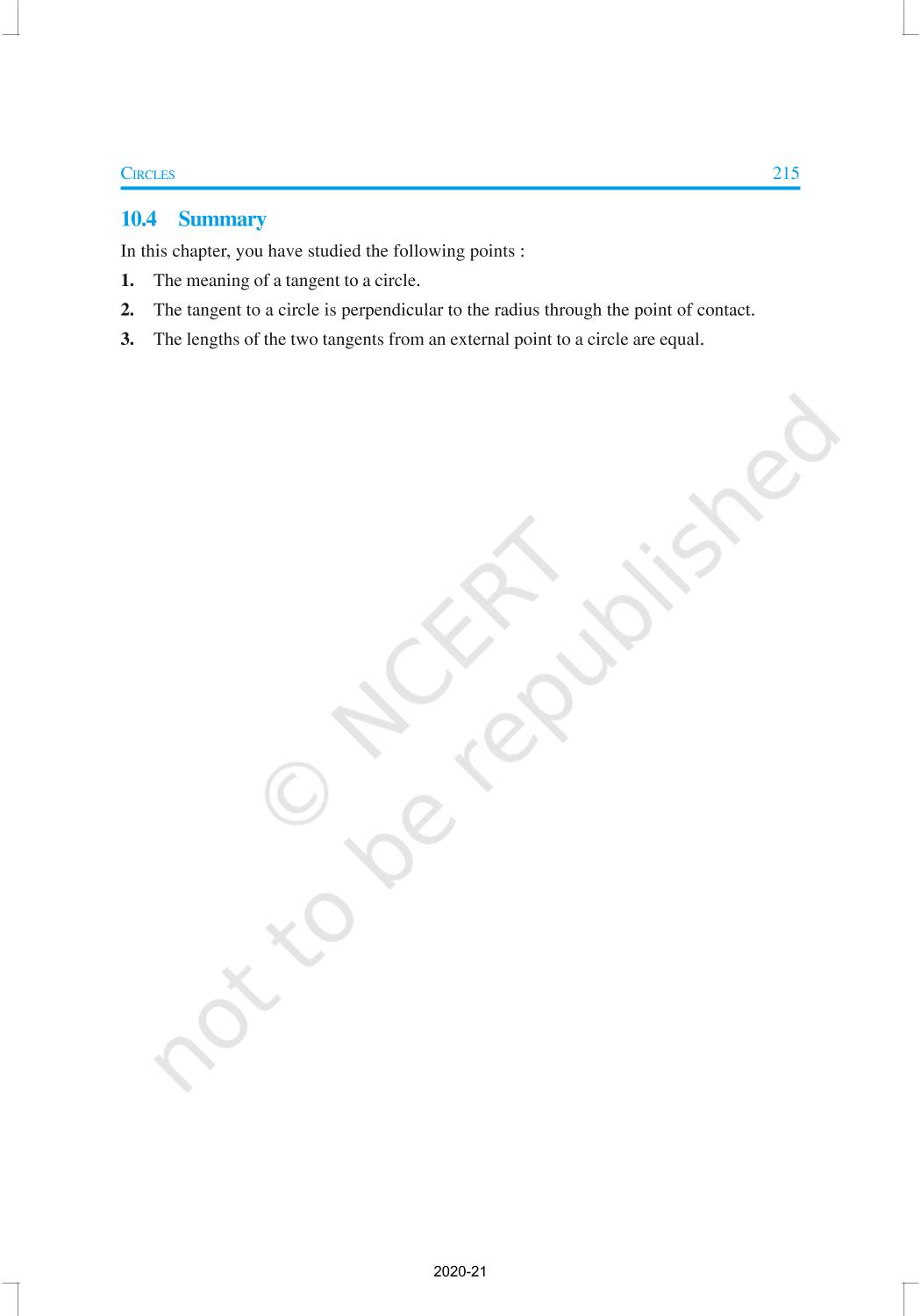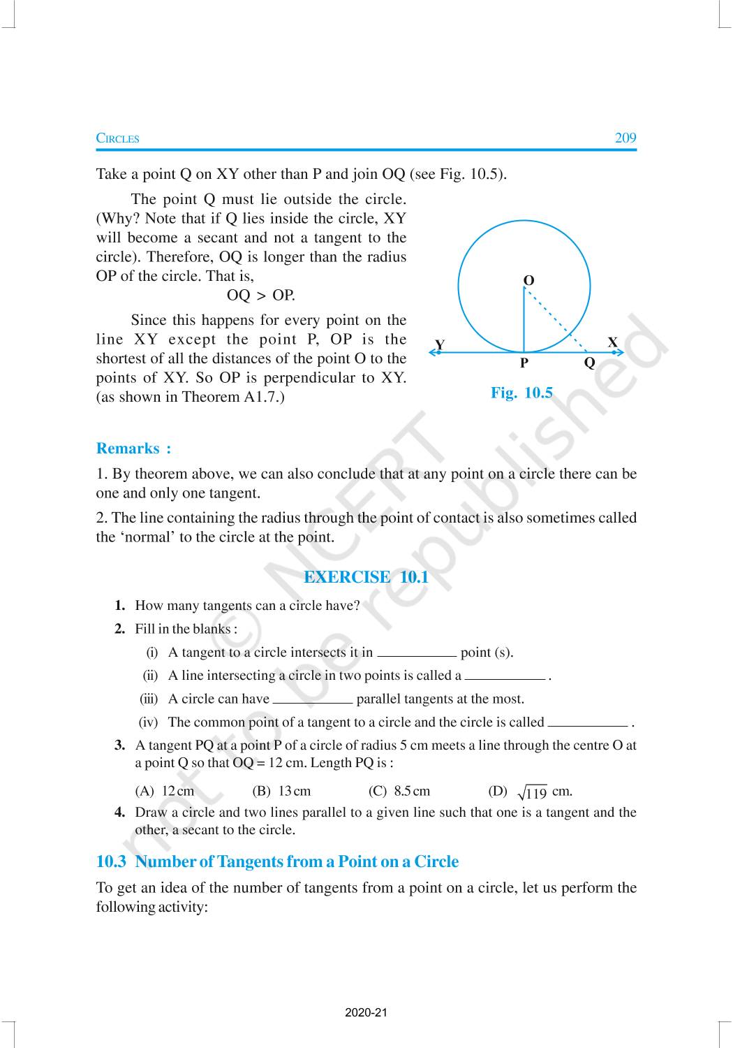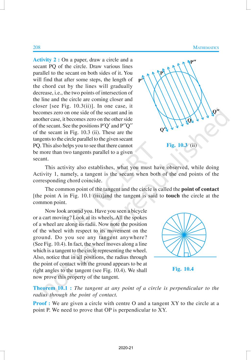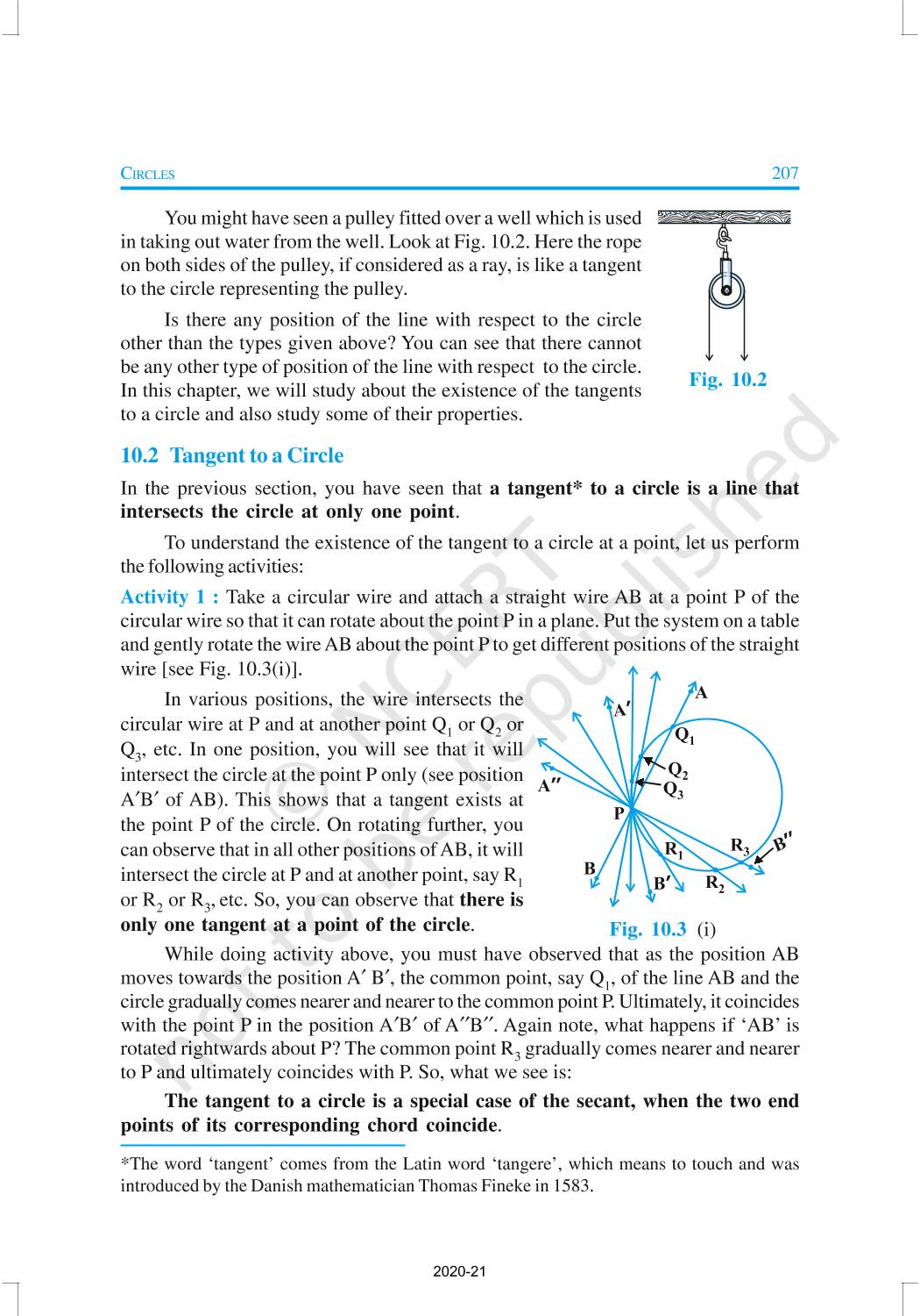 You have studied in Class IX that a circle is a collection of all points in a plane which are at a constant distance (radius) from a fixed point (centre). You have also studied various terms related to a circle like chord, segment, sector, arc etc. You will also learn some other important terms like Tangent to a Circle, Number of Tangents from a Point on a Circle, different theorems with proof.